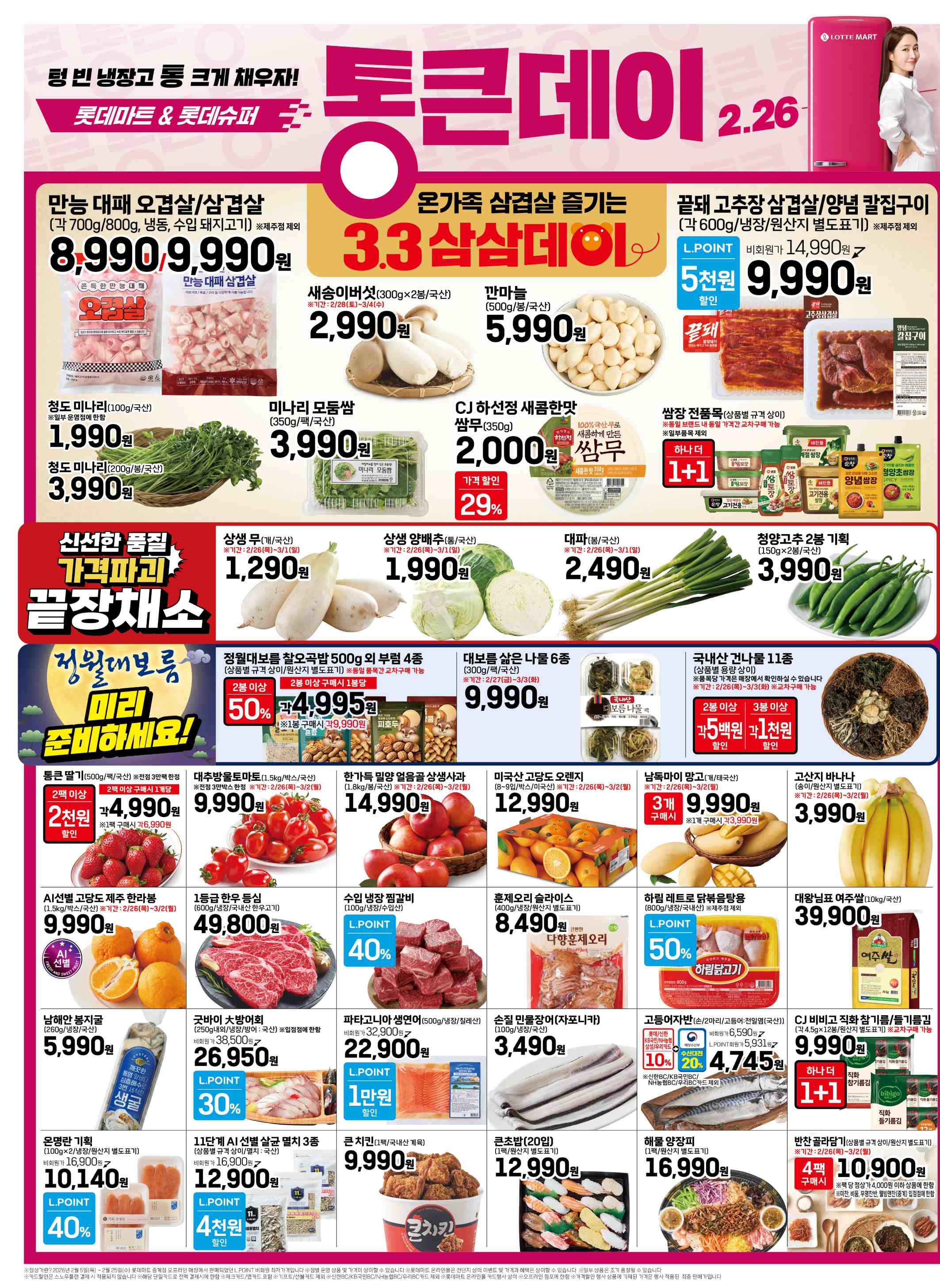 롯데마트의 ‘통큰데이’ 전단지(2026년 2월 26일~3월 2일) 주요 할인 내용을 정리해드릴게요.