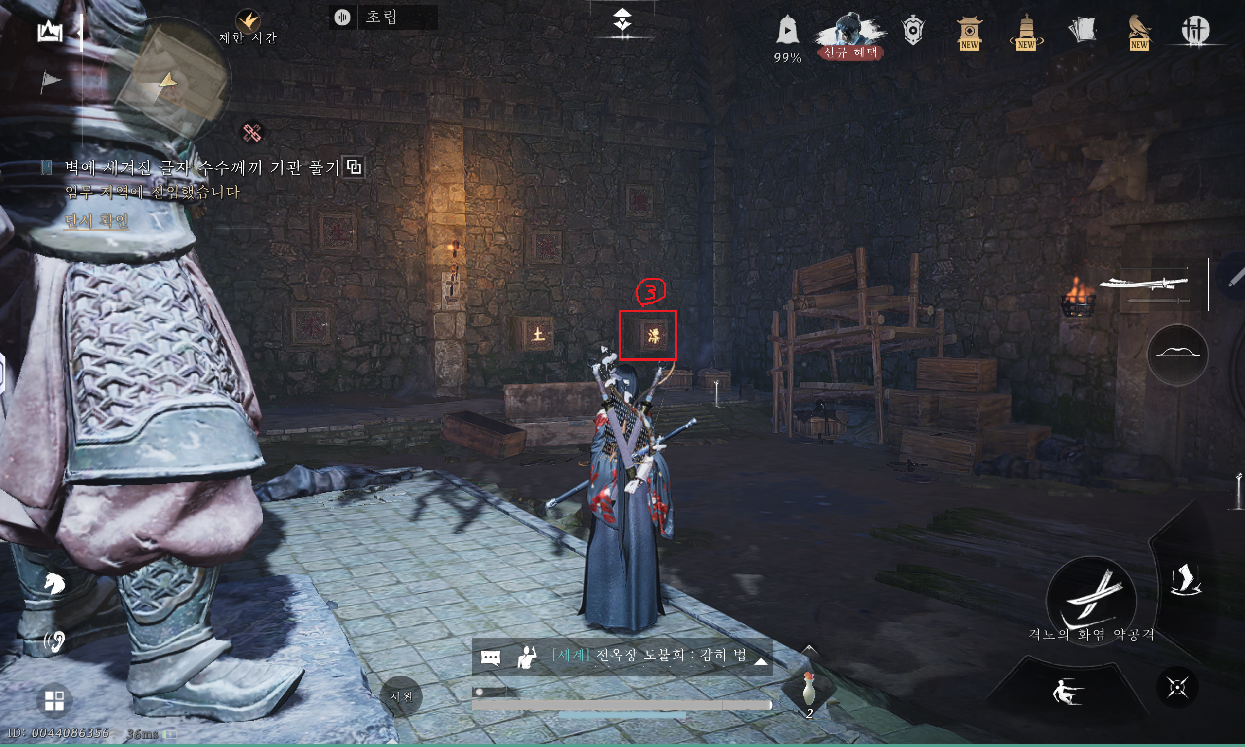 연운 '벽에 세겨진 글자 수수께끼 기관 풀기' 한자 누르는 순서! 연운 스토리 진행 중 한자로 된 수수께끼가 나와서 당황했습니다.이런 부분들은 아직 한글화가 안된 거 같네요. '벽에 새겨진 글자 수수께끼 기관풀기'아래 번호 순서대로 3개만 눌러주면 수수께끼 풀립니다. (꼭 순서대로...) 연운 플레이하다 보면 재미도 있고 여러 게임들의 요소들을 다 넣어놓은 게 신기했는데요. 이렇게 중간중간 막히는 부분들이 있는 것 같아요. 앞으로도 플레이하면서 턱턱 막히는 부분들 오면 바로 공유하겠습니다~ 게임.팁 2026.01.17