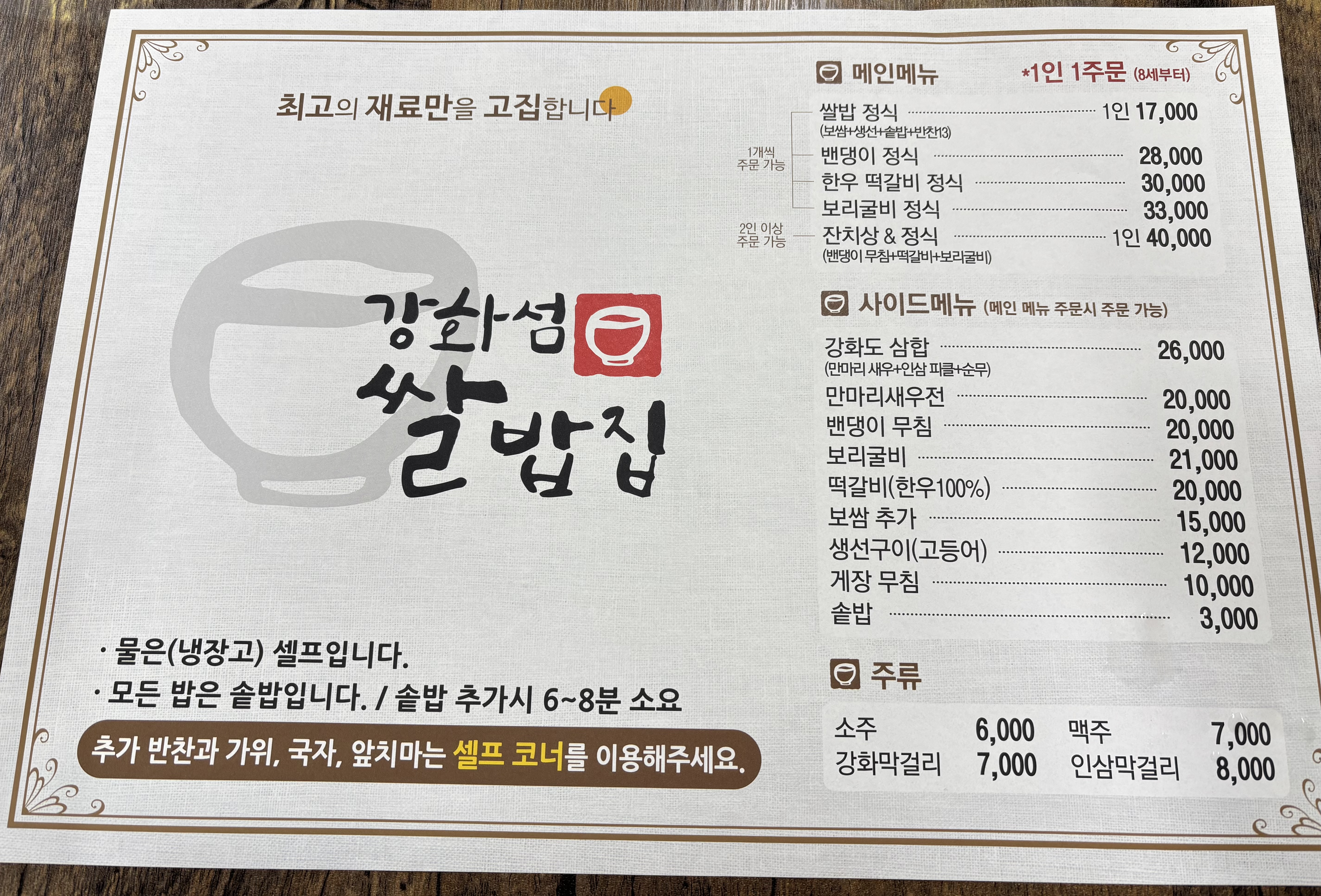 오랜만에 강화도로 바람쒜러 갔다가 만족스러운 한 끼 식사를 했던 '강화섬쌀밥집'에 대한 후기 작성해 보겠습니다.