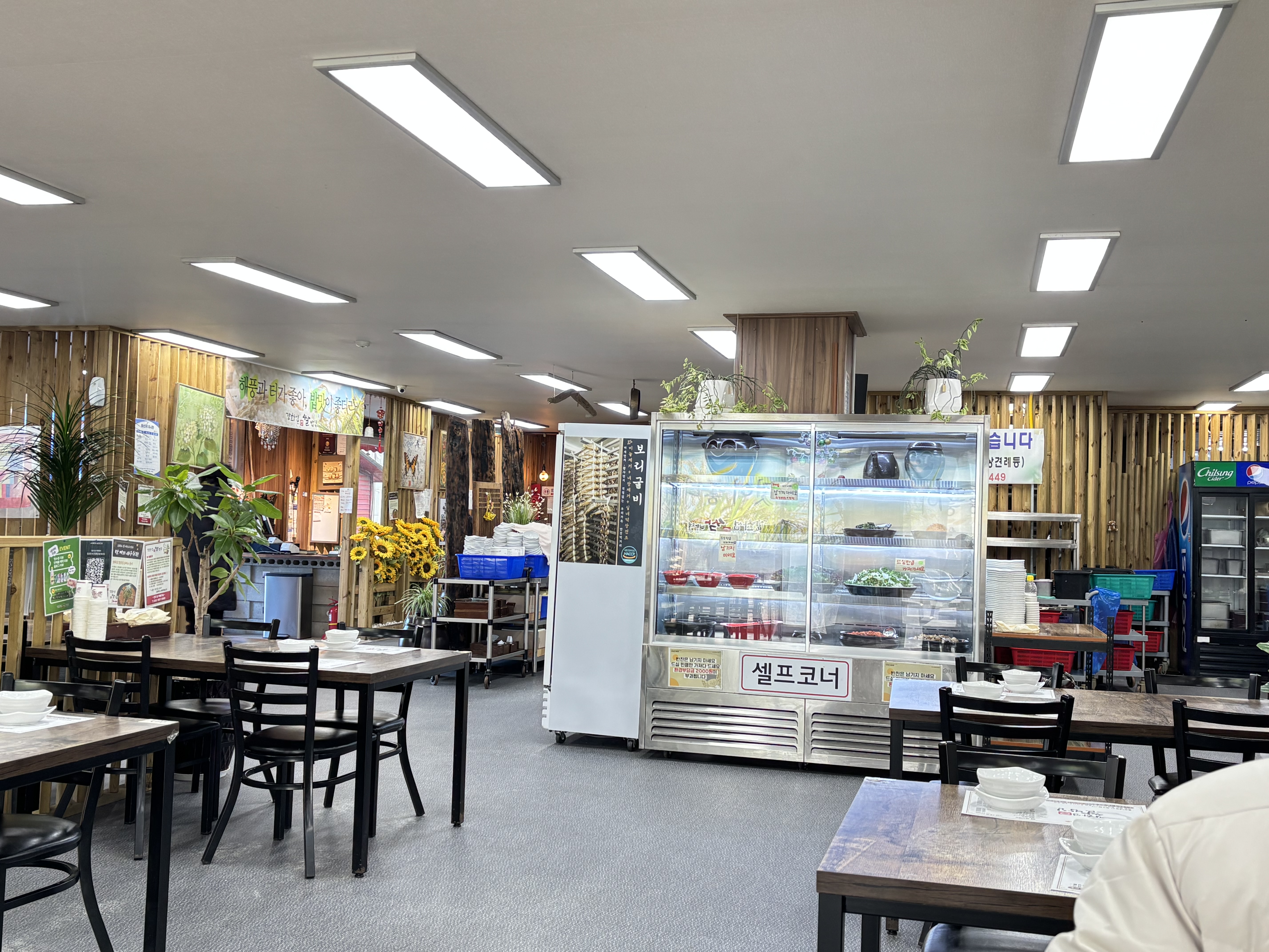 내부는 아래처럼 되어있고 셀프코너에서 원하는 반찬은 더 가져다 먹을 수 있도록 되어있었어요.