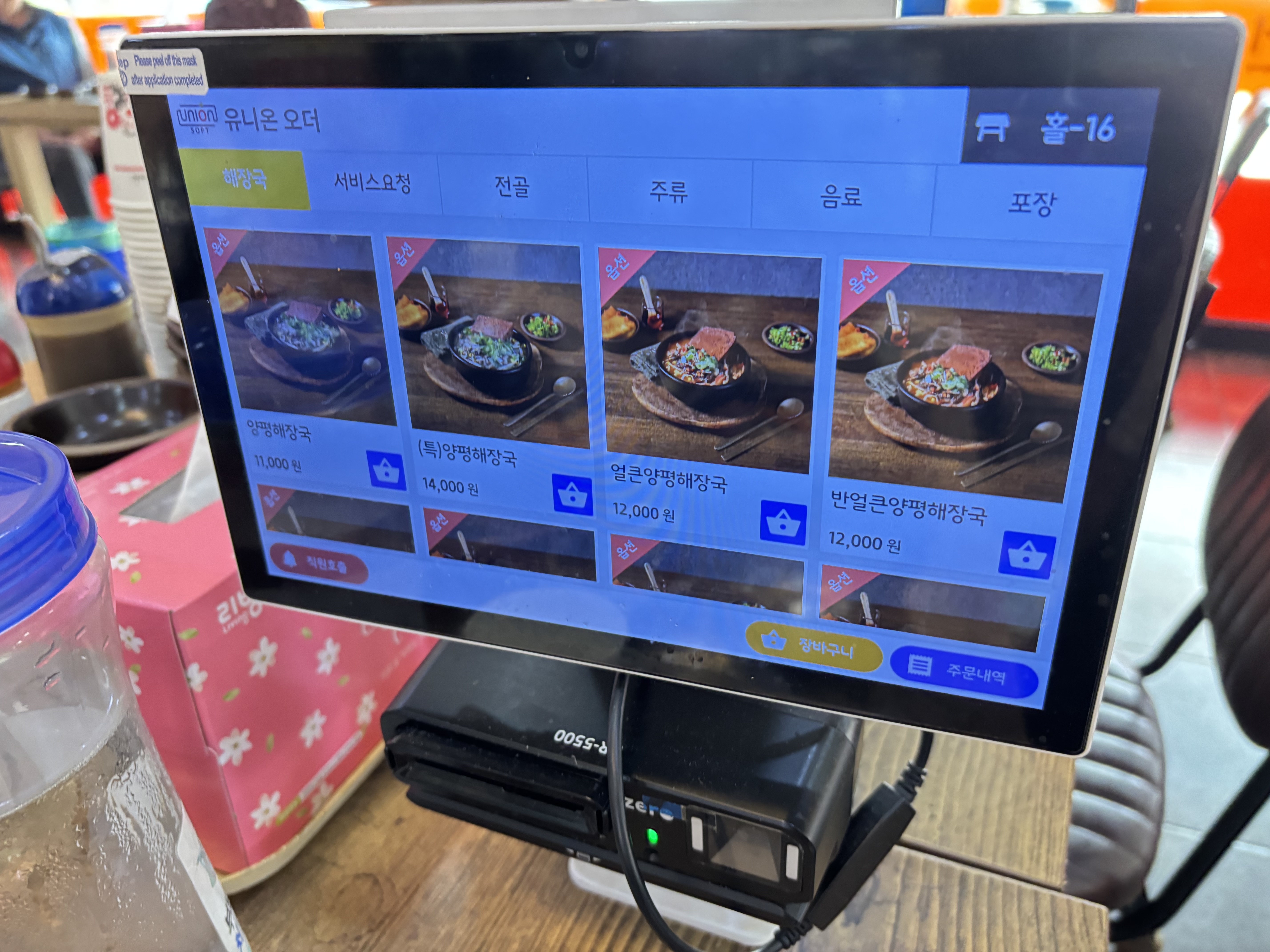 주문과 결제는 각 테이블마다 태블릿을 통해 편하게 할 수 있고 서비스 선지 추가도 가능해서 매우 편리했습니다.