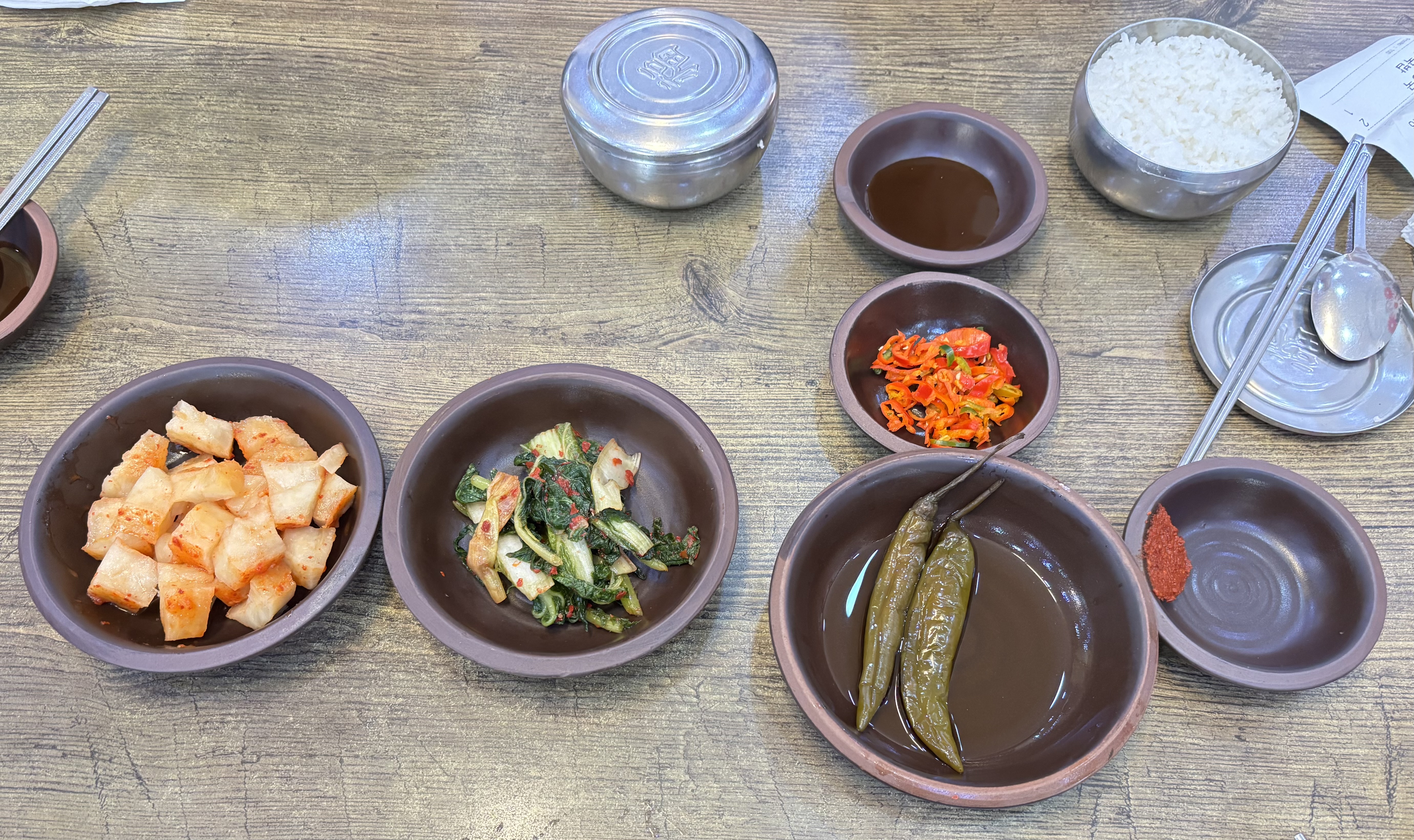 - 기본 반찬: 깍두기, 열무김치, 고추장아찌 등. 특히 깍두기와 장아찌는 해장국과 찰떡궁합!