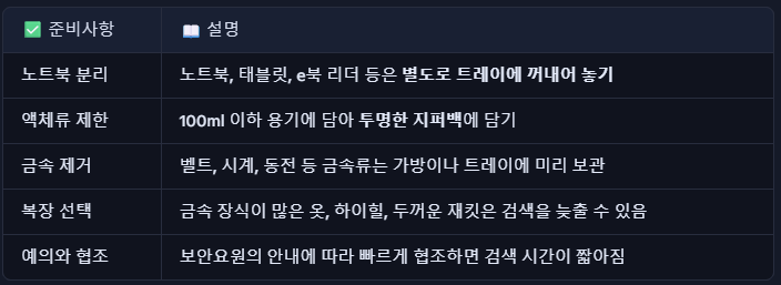 📌 3. 공항 보안검색 시 주의사항