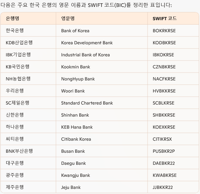 - SWIFT 은행 식별 코드: KAKOKR22XXX (똑같이 쓰시면 돼요)