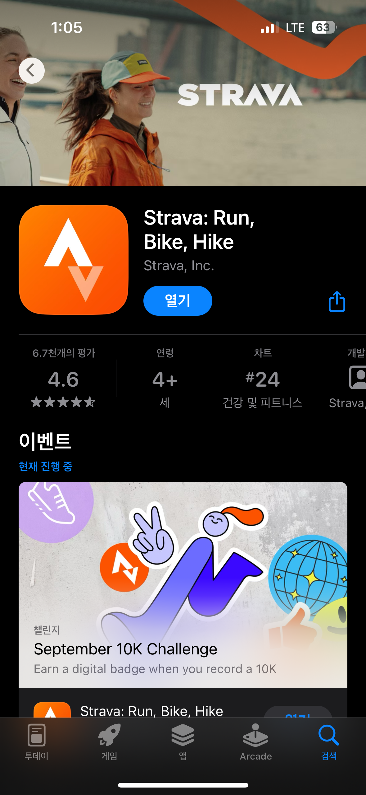 그리고 아래 사진에 시작하기 버튼을 클릭하면 스트라바 앱이 실행된다.