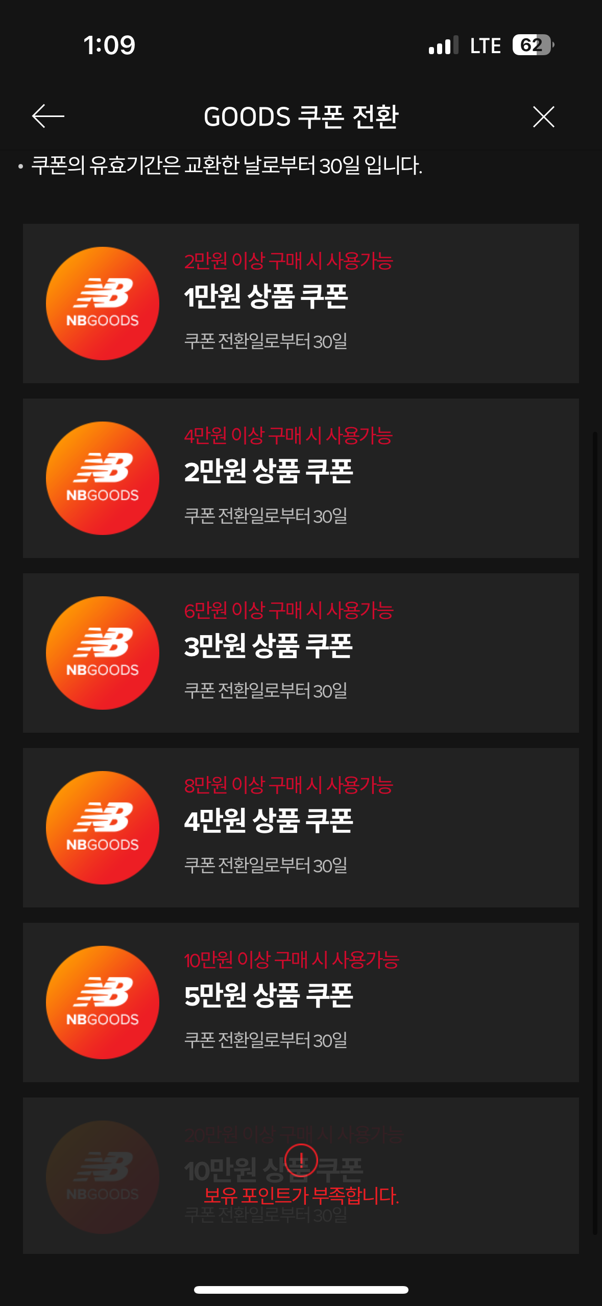 뉴발란스 앱에서 아래처럼 누적된 키로수를 확인할 수 있고 이를 포인트로 전환할 수 있다.