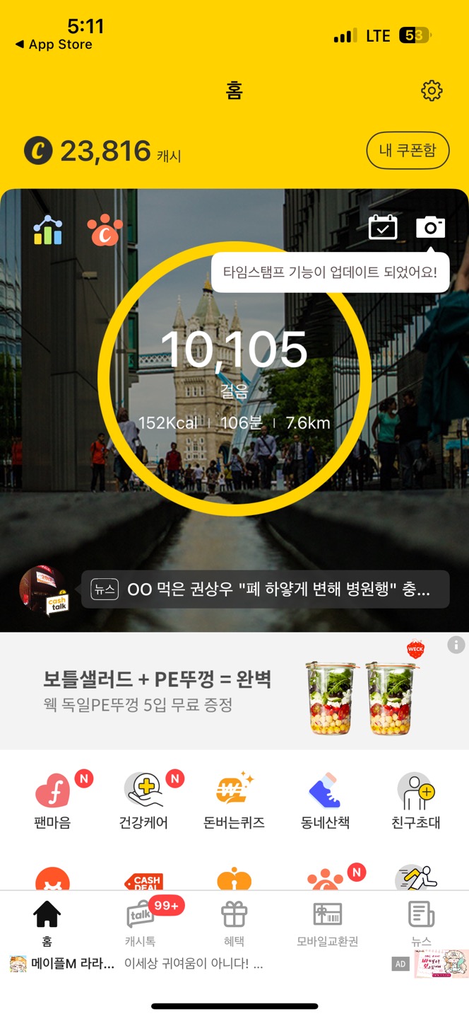 광고 시청 | - 1달에 만보걷기+광고시청으로 약 7,200원 | TRMNA9 |