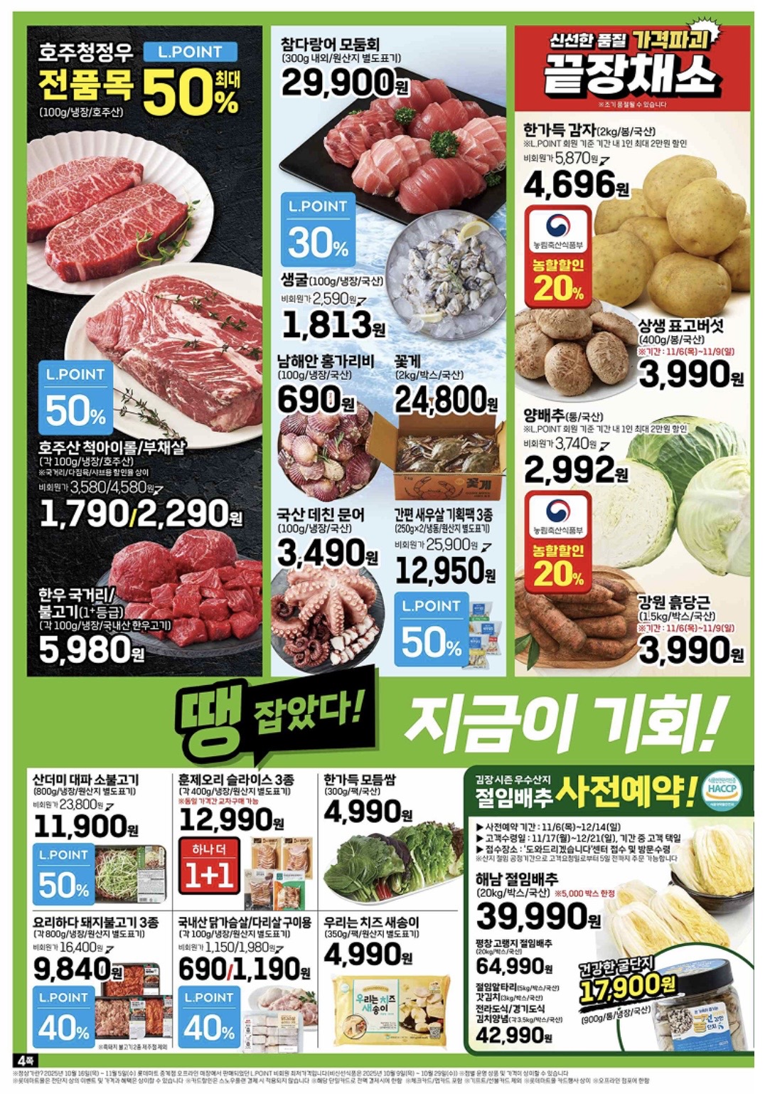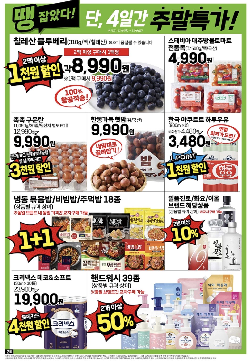 📌 행사카드: 롯데, BC, 신한, NH농협, 삼성, 우리 카드 📌 휴점일: 일부 점포는 11월 9일(일) 휴무. 방문 전 앱/홈페이지 확인 필수