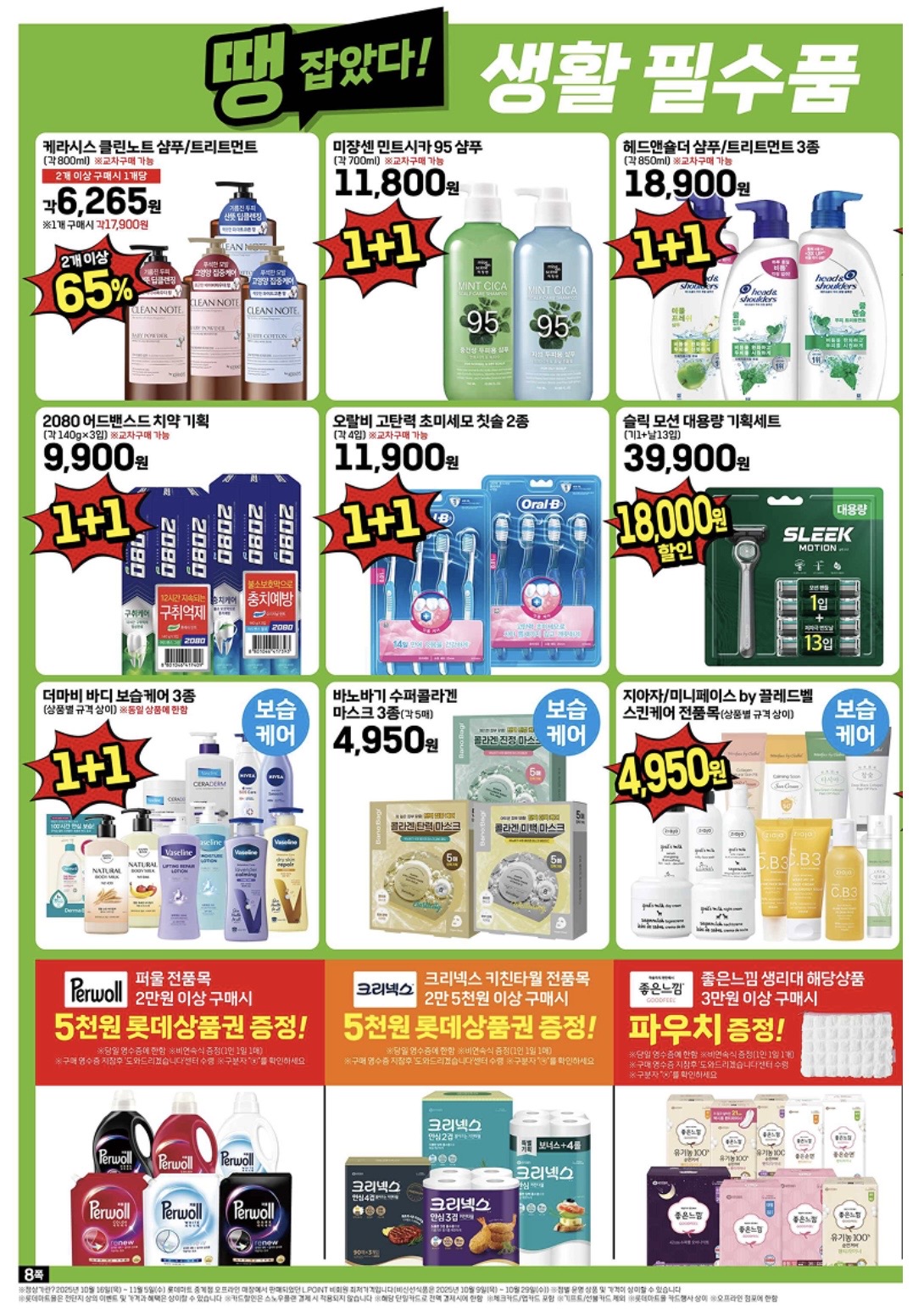 - 프로쉬 식기세척기 세제: 2개 이상 구매 시 50% 할인 (롯데카드 한정)