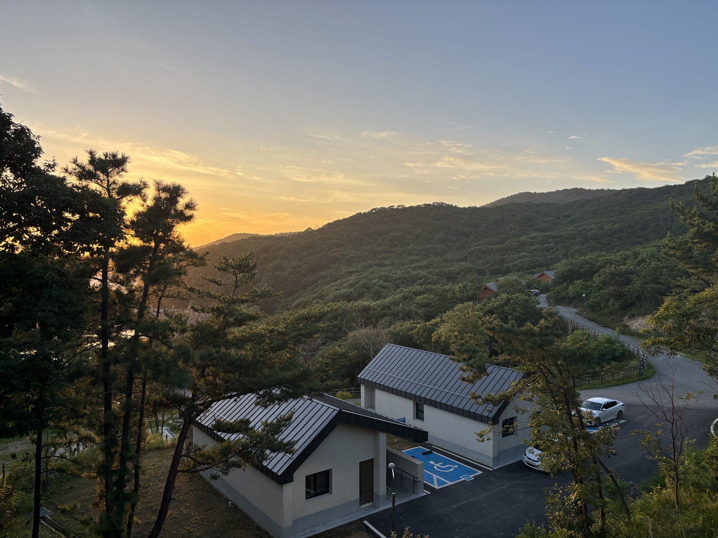 저녁 식사 후 노을과 함께 휴양림 내를 산책했답니다. 노을뷰 진짜 예쁩니다~