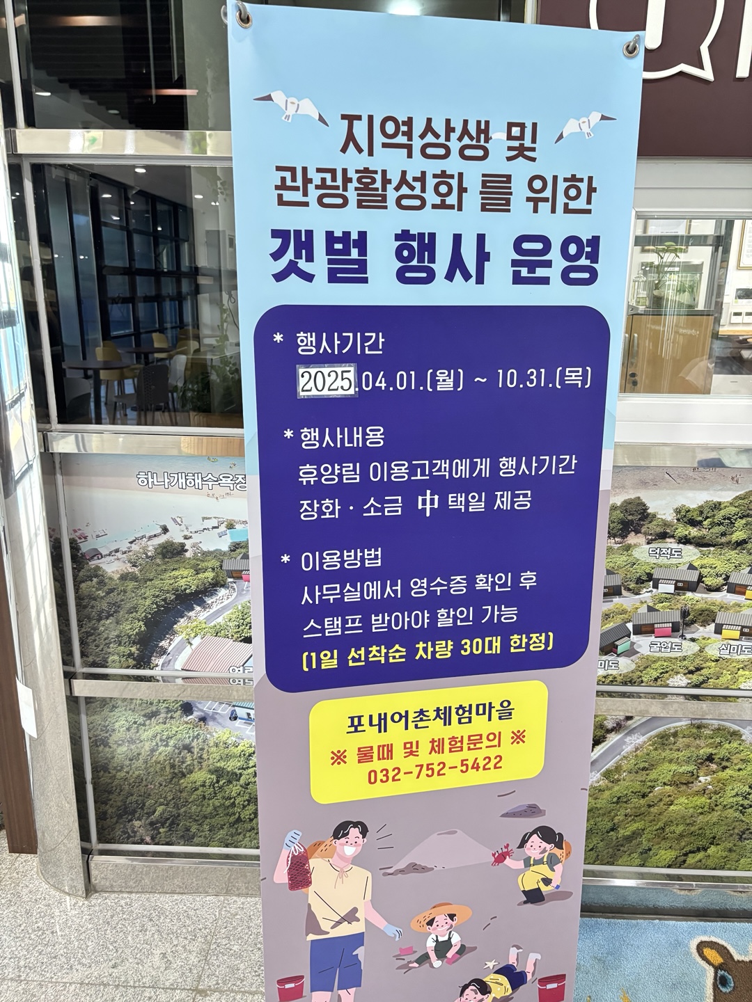 하나개 해수욕장 내에 있는 포내어촌 체험마을에서 갯벌 체험을 하러 왔습니다.