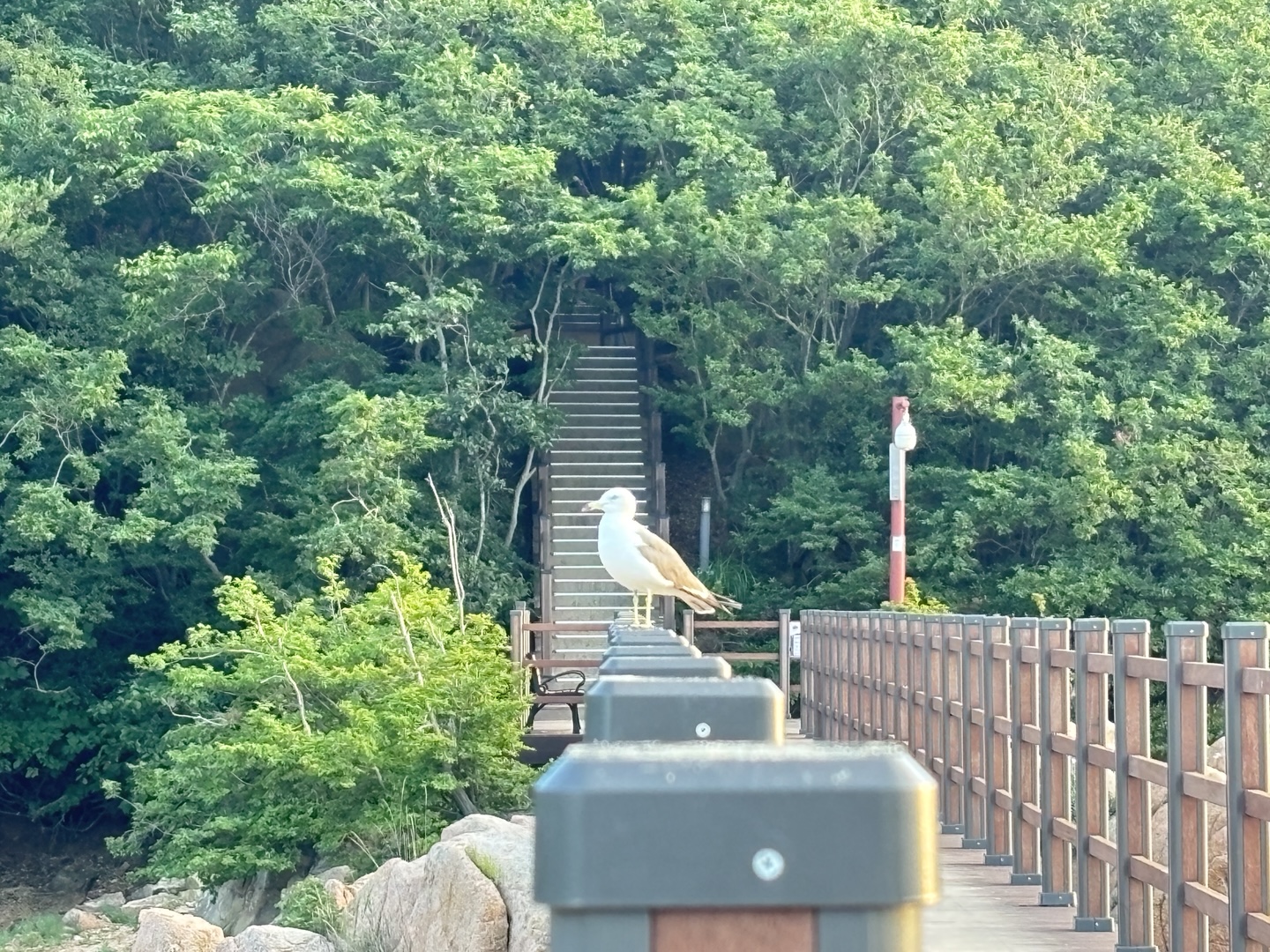 103호에서 보이는 베란다 뷰는 나무가 우거져있어 바닷가가 보이지는 않아서 아쉬웠습니다.