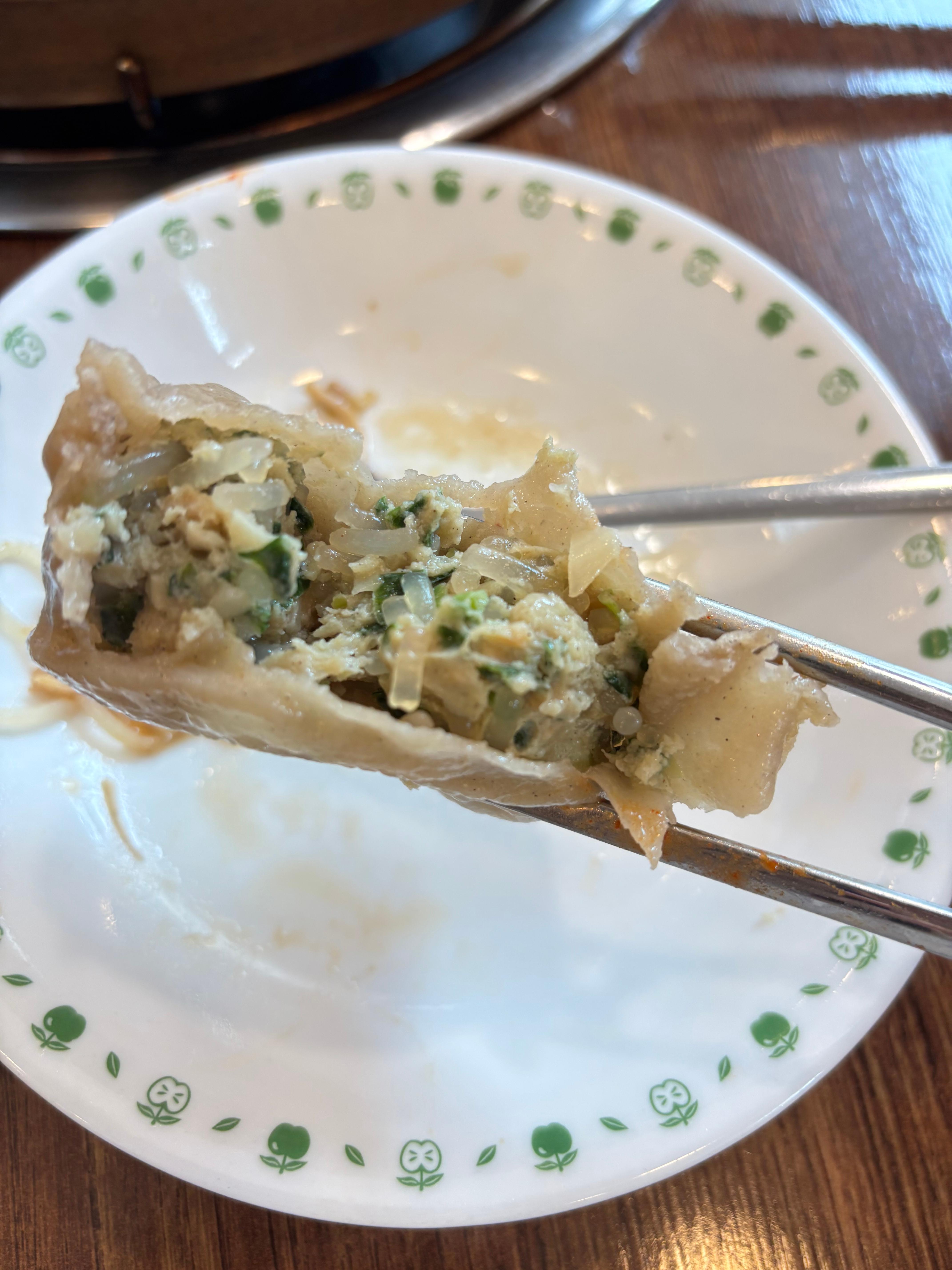 숙주 아래에 고기도 꽤 많이 있었고 당면도 들어있어서 좋았고 국물도 떠먹으면 너무 짜거나 달지 않고 최고였어요.