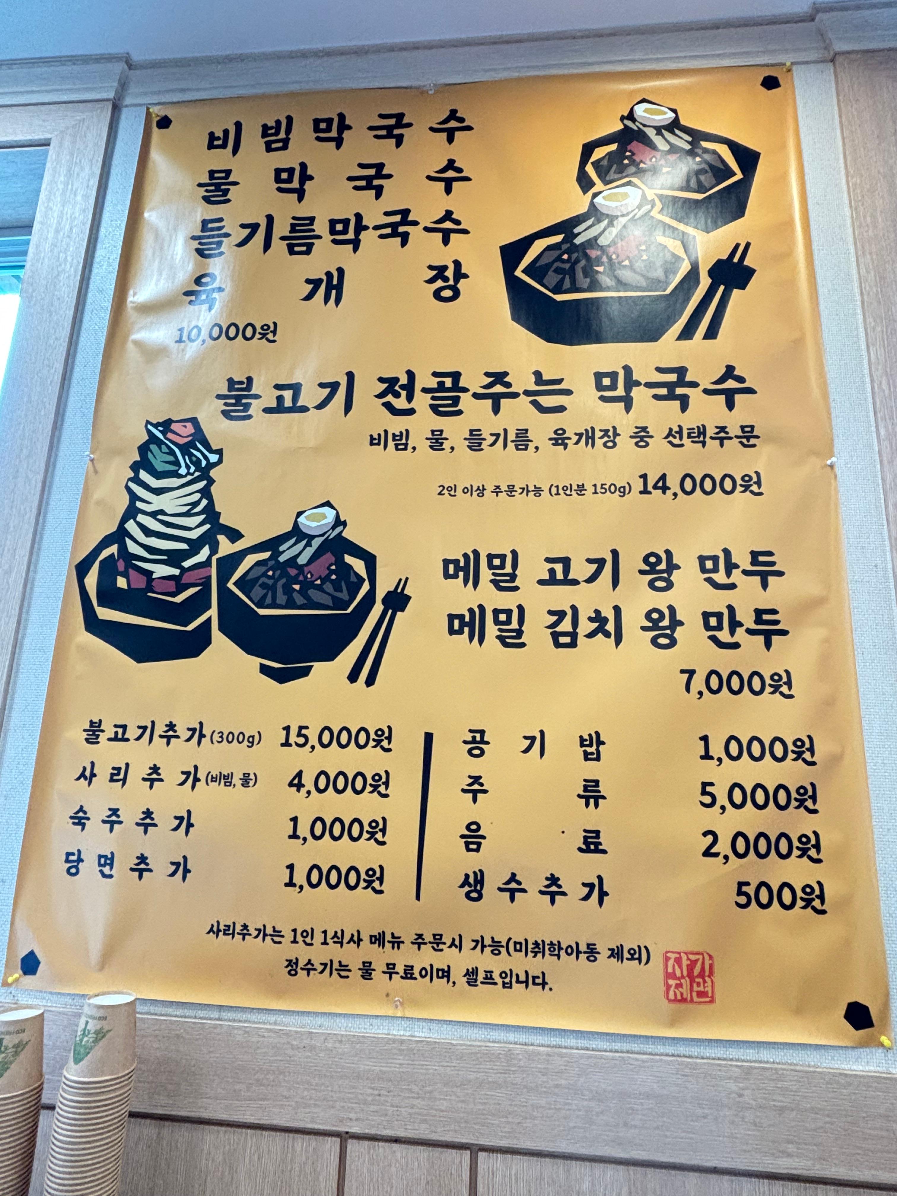 막국수는 비빔, 물, 들기름 그리고 육개장 중 선택할 수 있는데 양이 서비스 느낌이 아닌 온전한 1인분 양이 나온다는 겁니다.