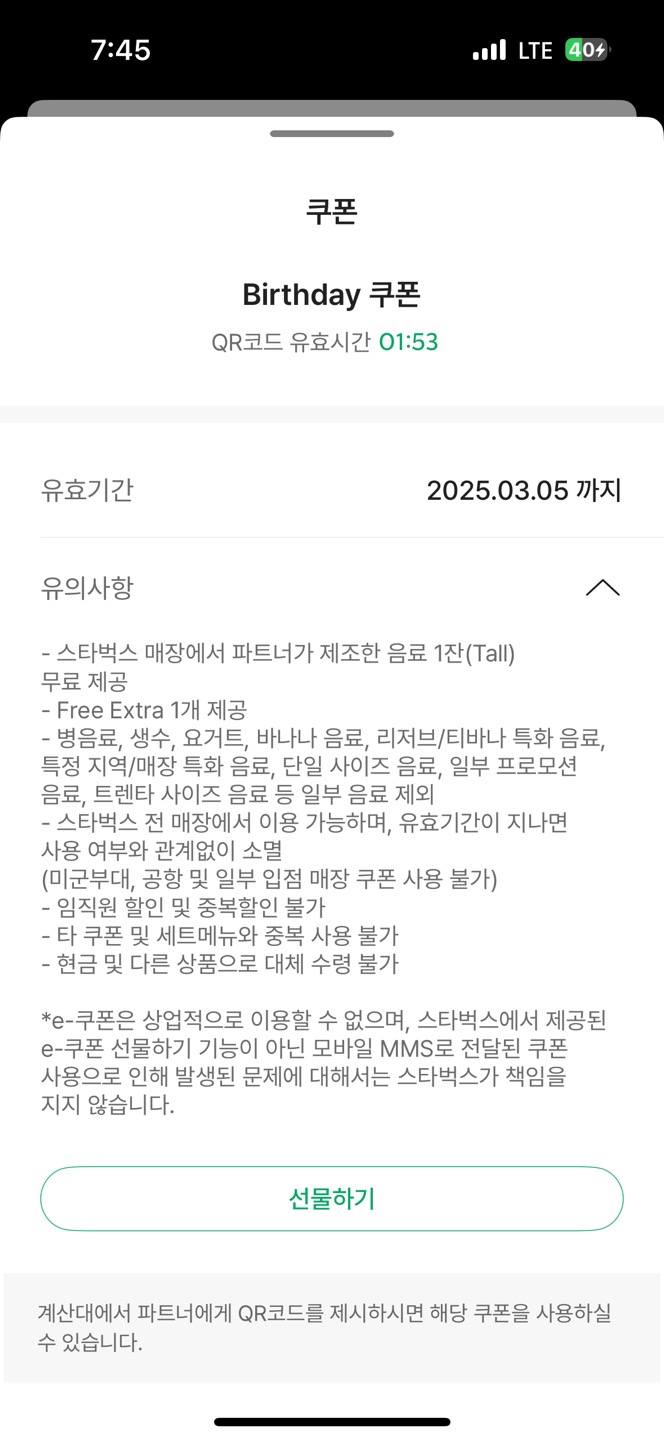 [ 스타벅스 Birthday 쿠폰 유의사항 ]