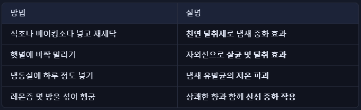 이런 아이템들은 냄새를 방지할 뿐만 아니라, 여름철 전체적인 세탁 스트레스를 줄여주는 데도 큰 도움을 줍니다.