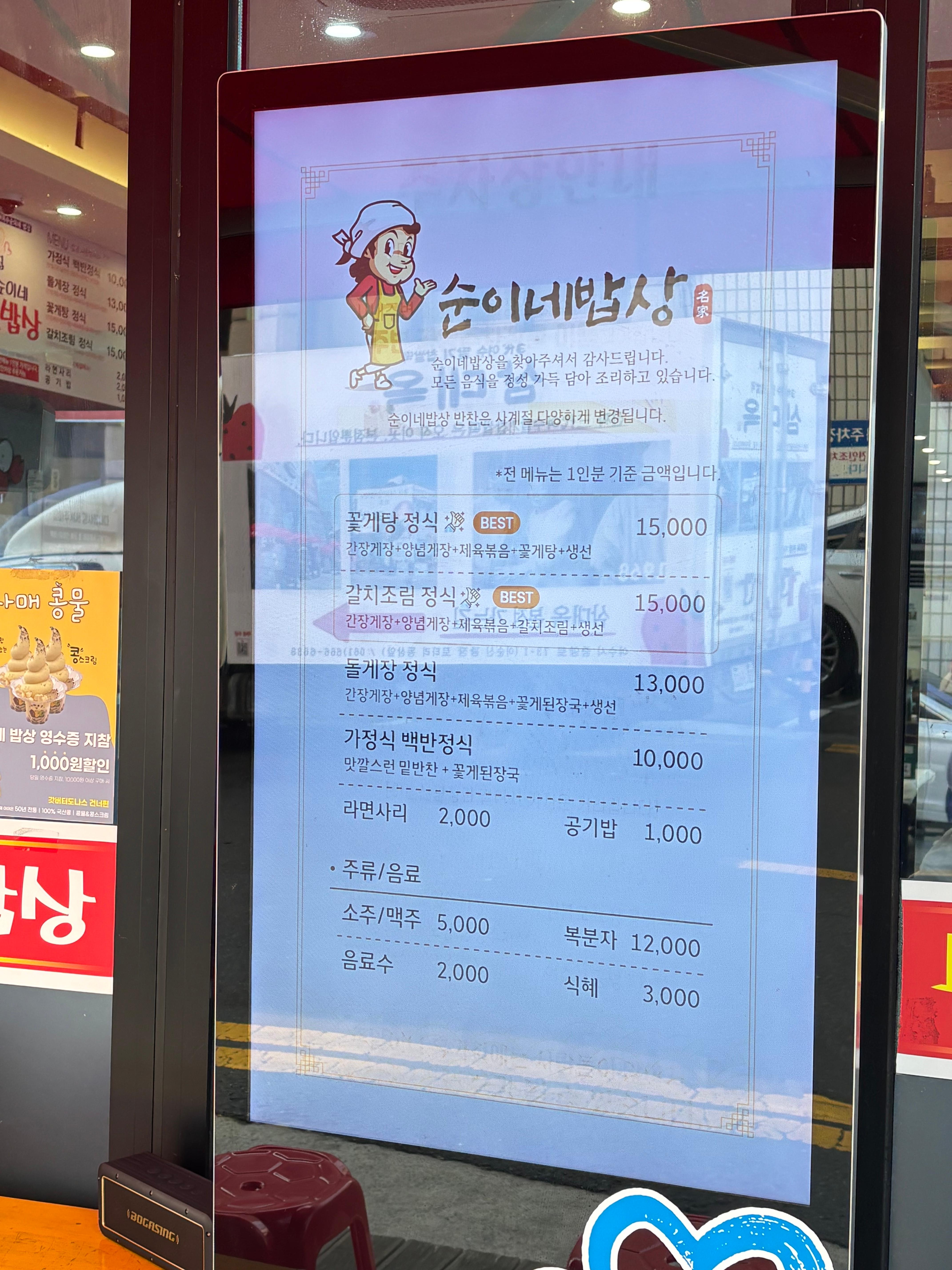 이곳의 특징이라면 순이네밥상에 비해 가격은 조금 있는 듯 보이지만 3회 게장 무료 리필이 가능하기 때문에 게장을 원 없이 맛보고 싶으신 분에게는 더 가성비 좋은 곳이 될 것입니다.