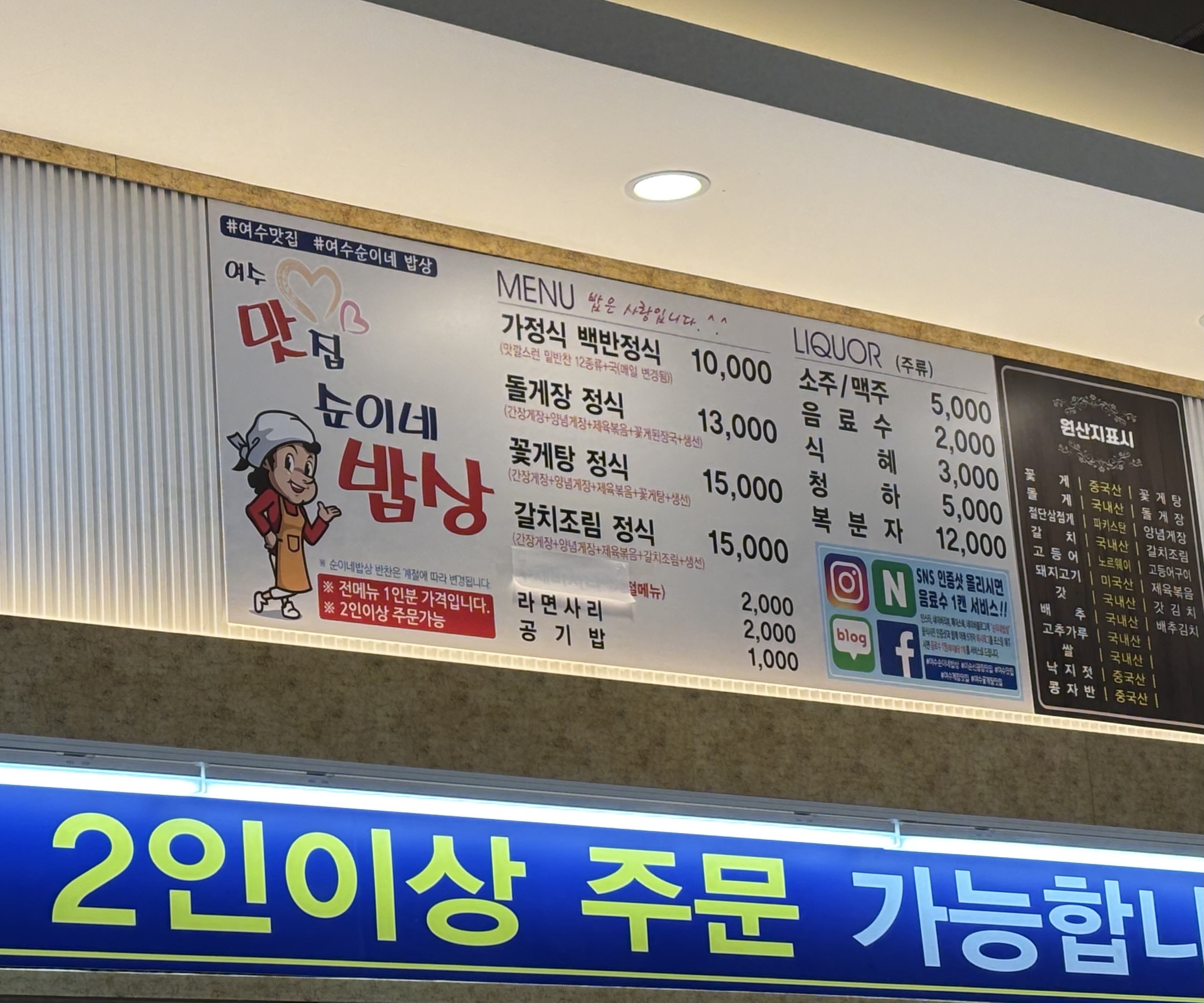 아래 사진에 메뉴 보시면 아시겠지만 가격이 참 착합니다. 그렇다고 나오는 음식이 부실하지도 않았어요.