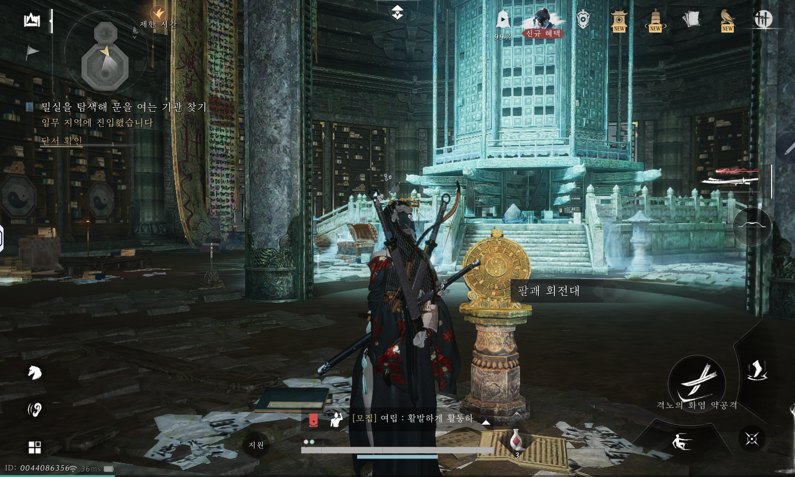 이상으로 연운 게임 플레이도중 막힐 수도 있는 부분인 '밀실을 탐색해 문을 여는 기관 찾기' 팔괘회전대 퀘스트에 대한 정답에 대해 알려드렸습니다.