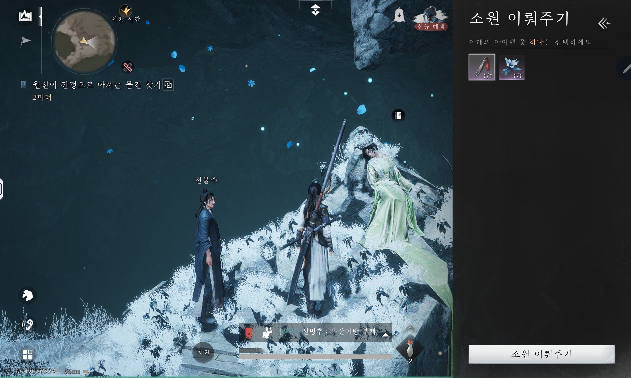 월신이 아끼는 물건을 찾아서 월신에게 주면 되는 미션입니다.