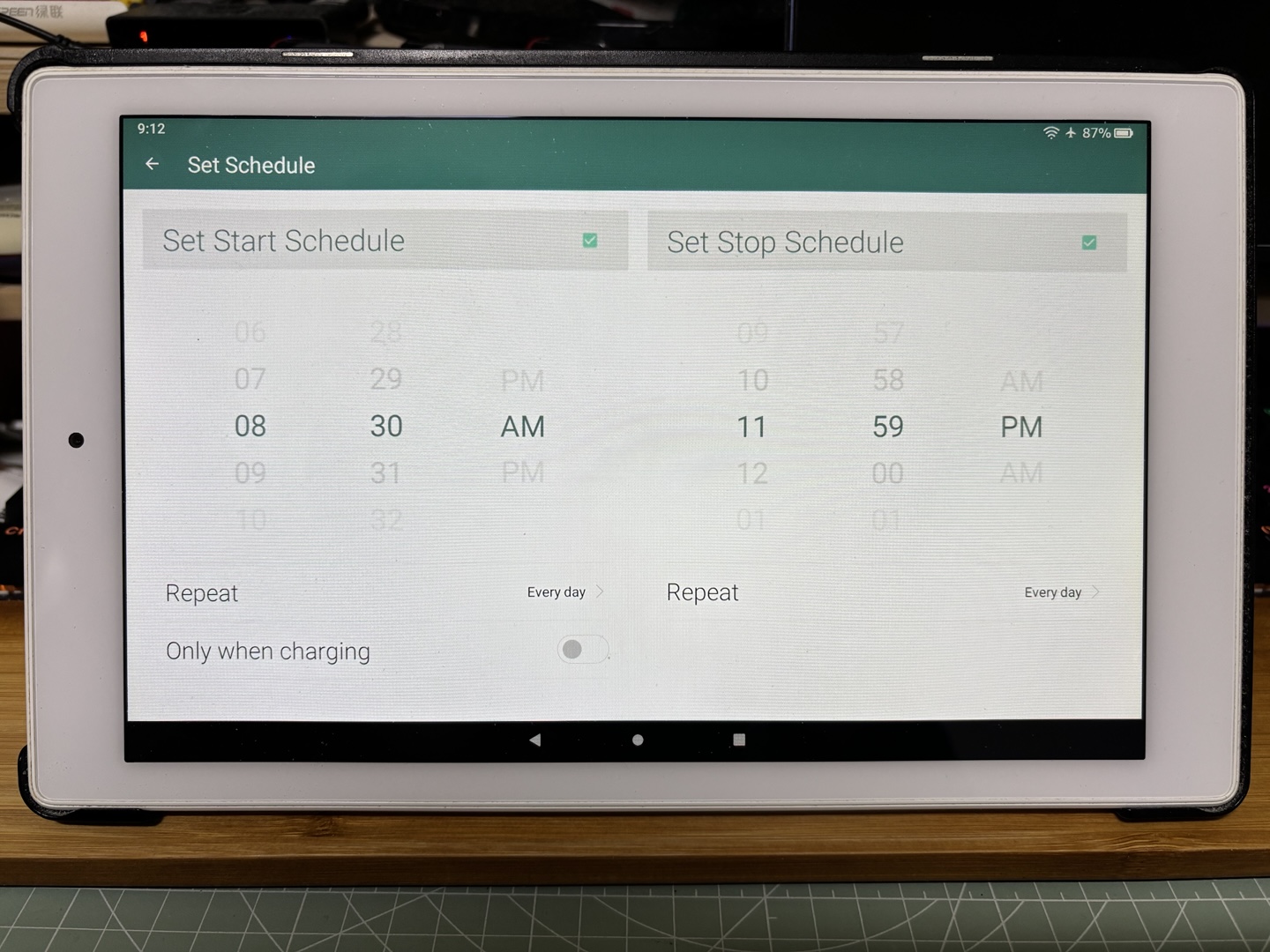 원하는 시간에 Fotoo앱이 시작되고 원하는 시간에 종료될 수 있도록 스케줄을 설정할 수 있습니다.