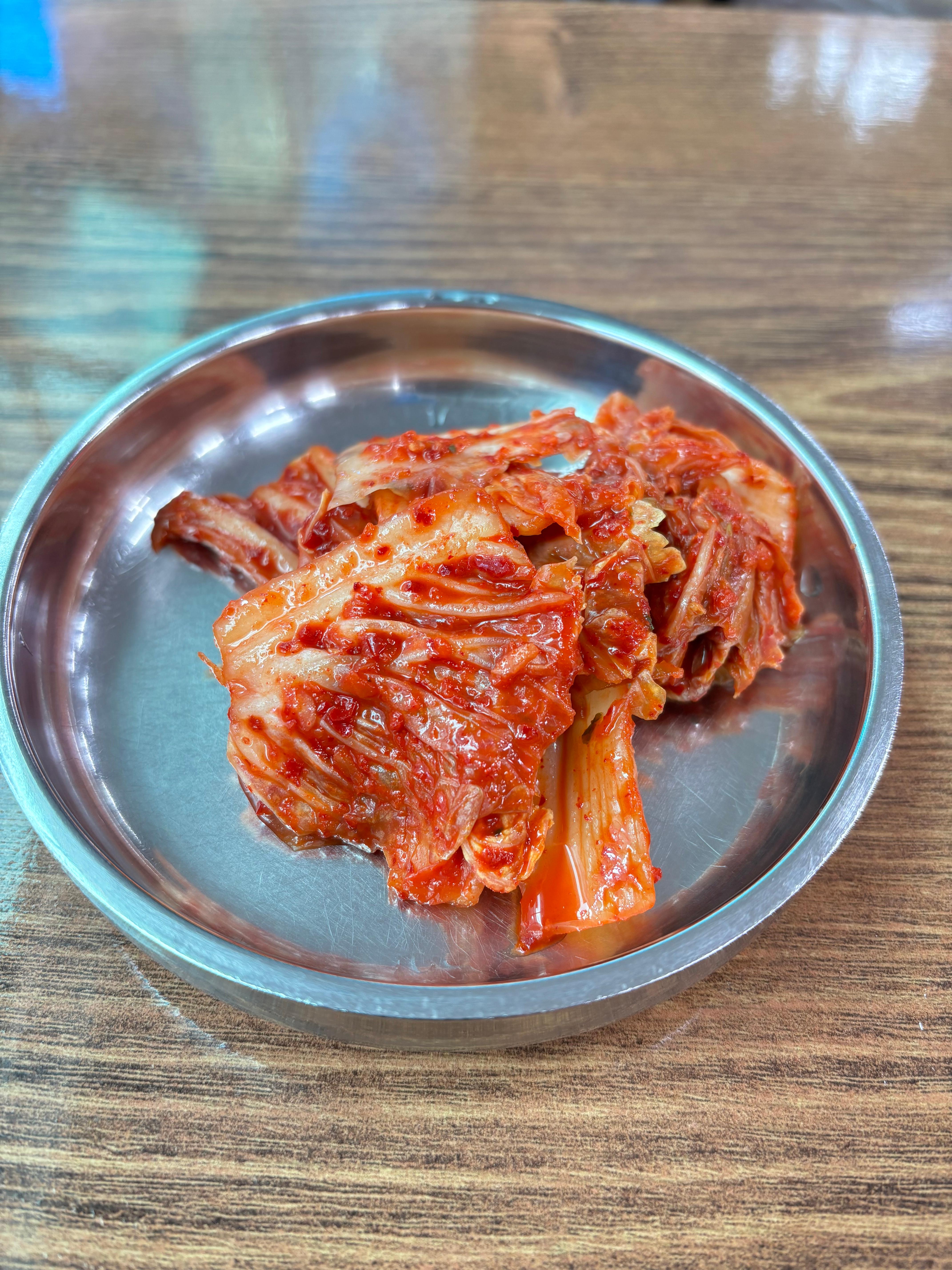 자리에 앉아 김치와 물 떠놓고 있으면 빠르게 메뉴가 나왔습니다.