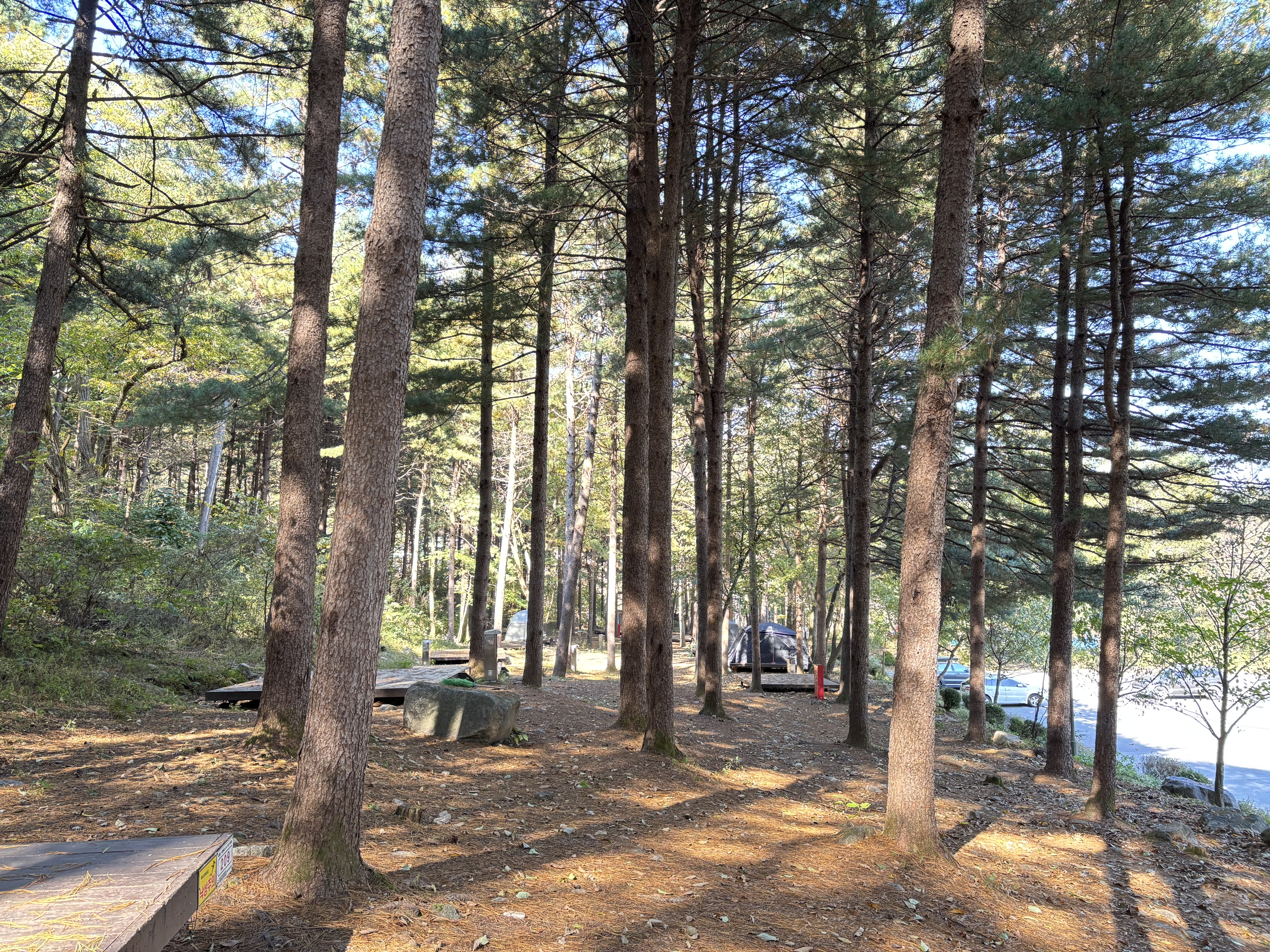209, 210 사이트는 아래 사진과 같이 숲속에 푹 쌓여있는 느낌을 주면서 상단에 위치해 프라이빗하고 화장실 등 시설과도 매우 가까워서 추천드립니다.