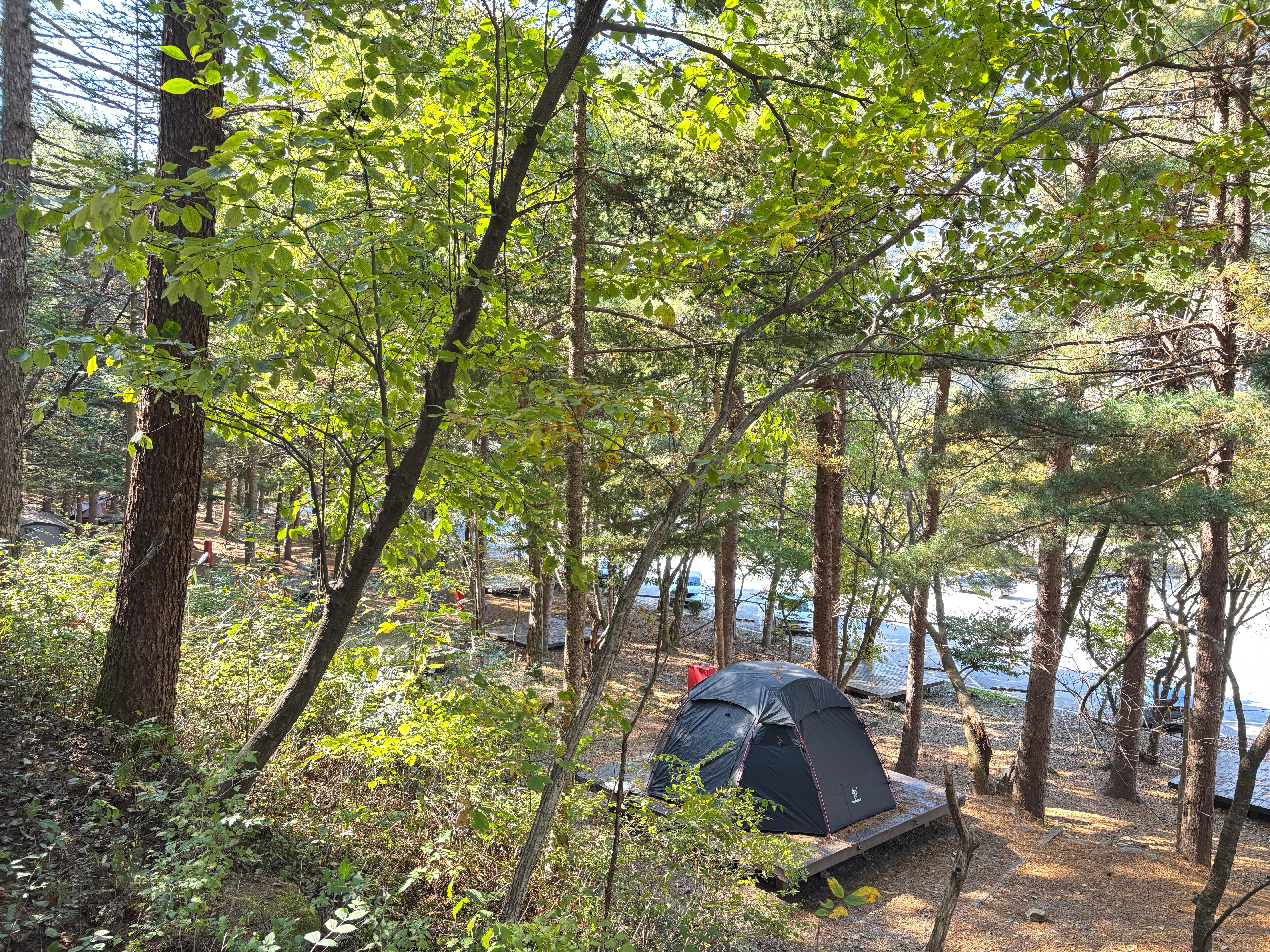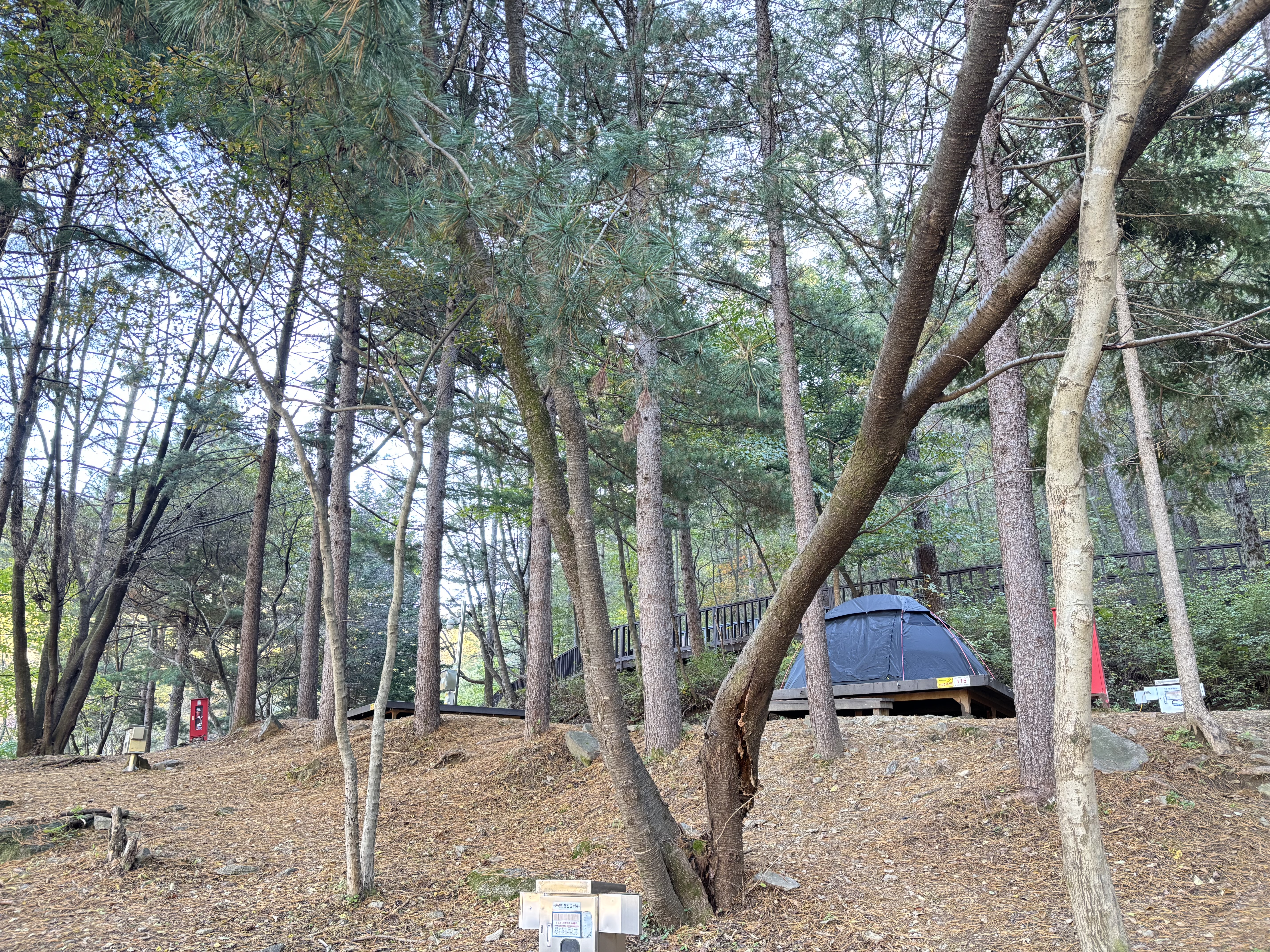 체크인 시간이 보통 14시 또는 15시잖아요? 다른 융통성 없는 휴양림들과 달리 14시 이전에 도착해도 해당 데크가 비어있다면 빠르게 텐트 설치가 가능했습니다.
