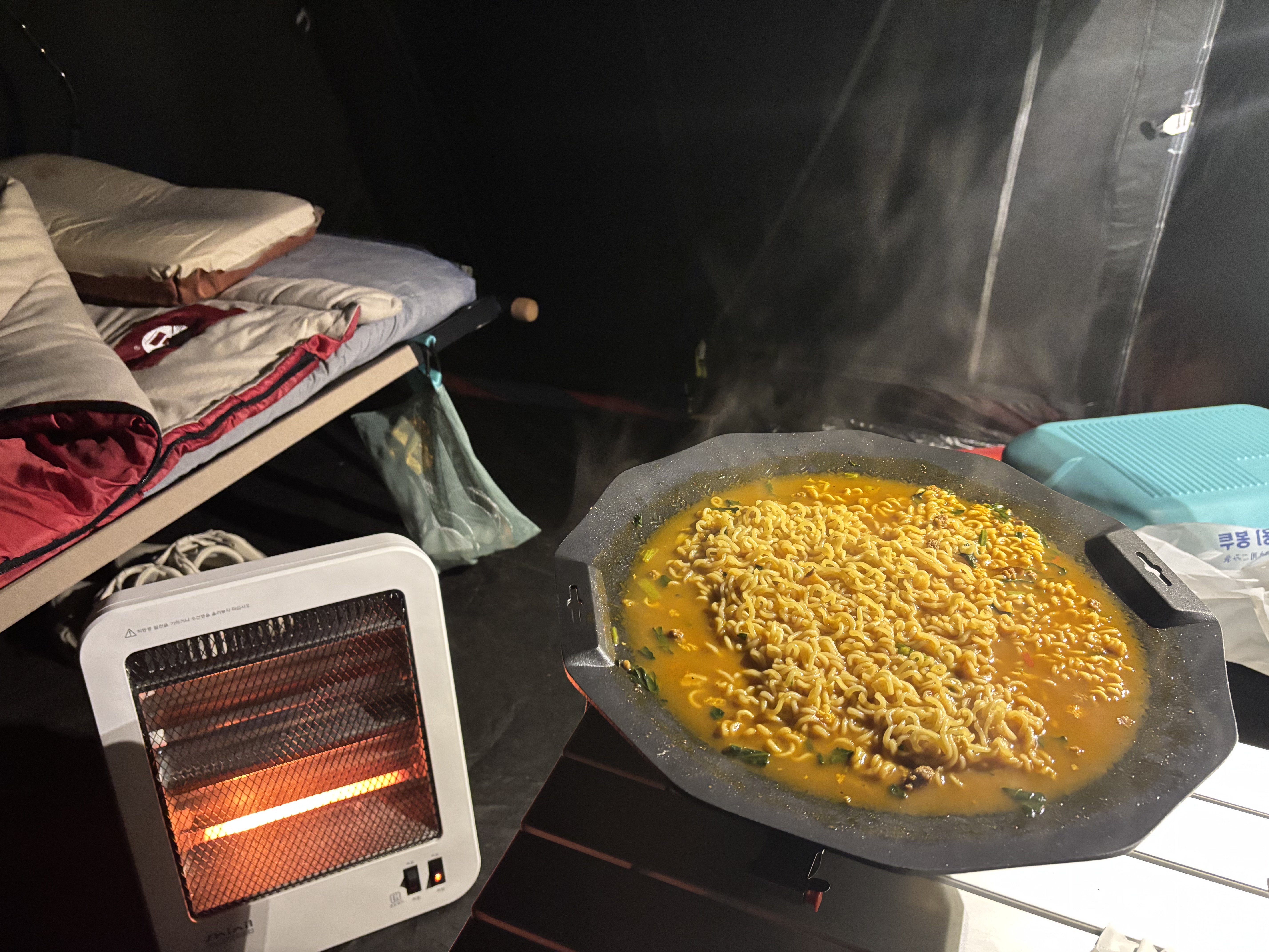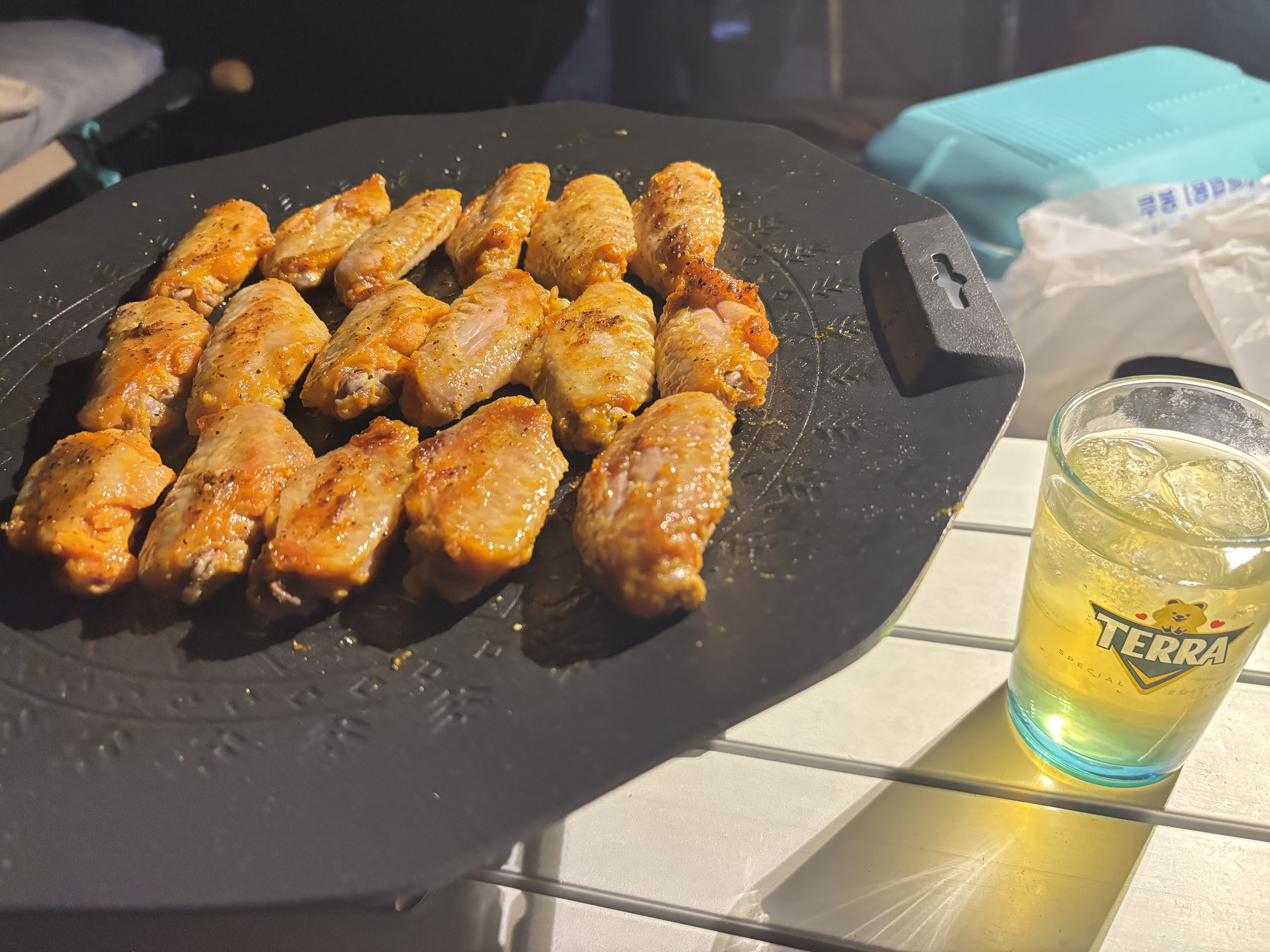 이번 캠핑때는 요렇게 대패삼겹꼬치 구이와 라면, 닭날개를 먹방하며 제대로 힐링하고 돌아왔습니다~!