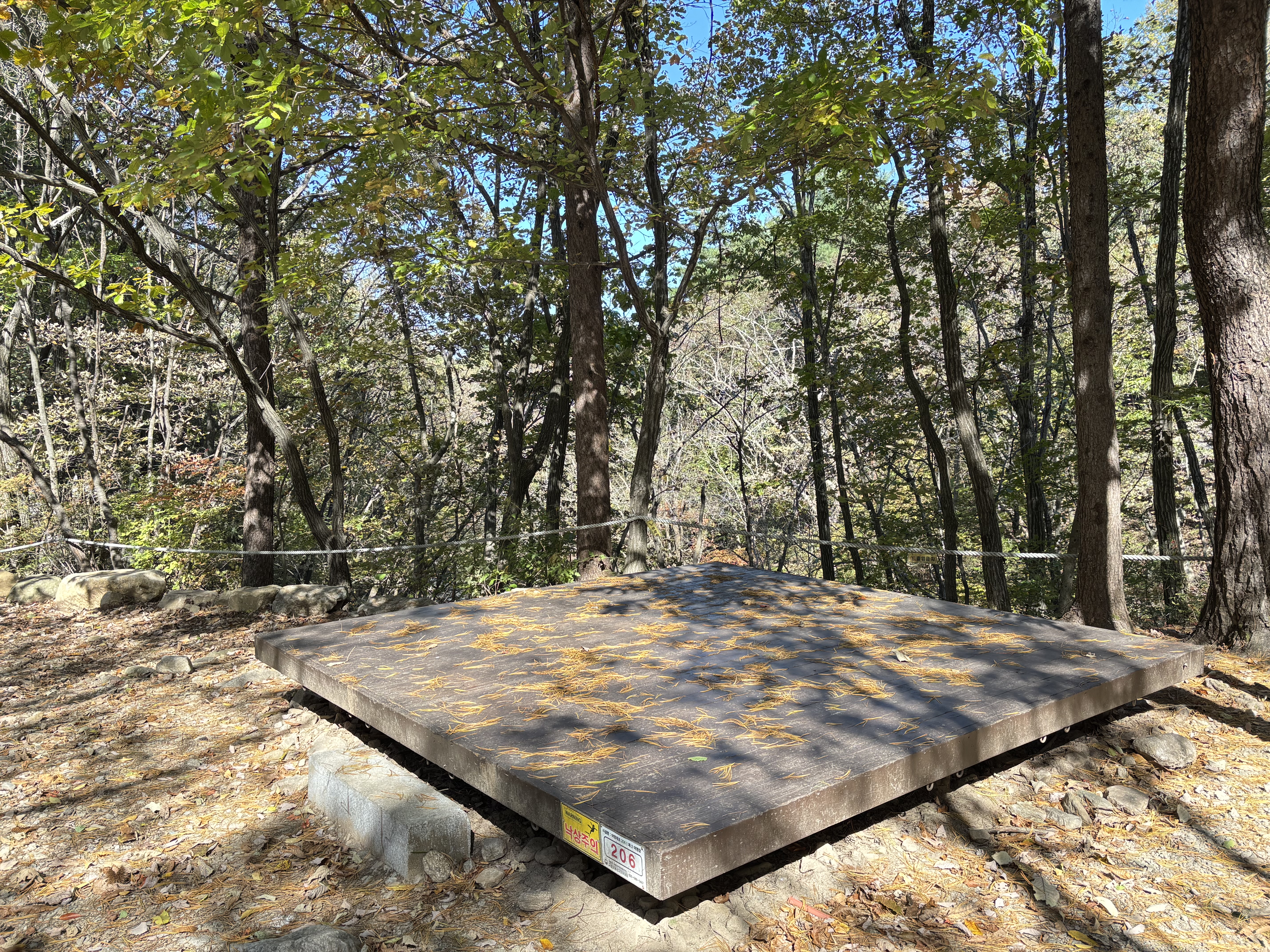 206번 사이트가 아래 사진인데요. 바로 사이트 아래에 큰 계곡이 있어서 풍경도 좋고 여름에 매우 시원할 것 같았습니다. 다만, 계곡물 소리가 엄청 크기 때문에 밤에 소리에 민감하신 분은 꼭 피하셔야 합니다.
