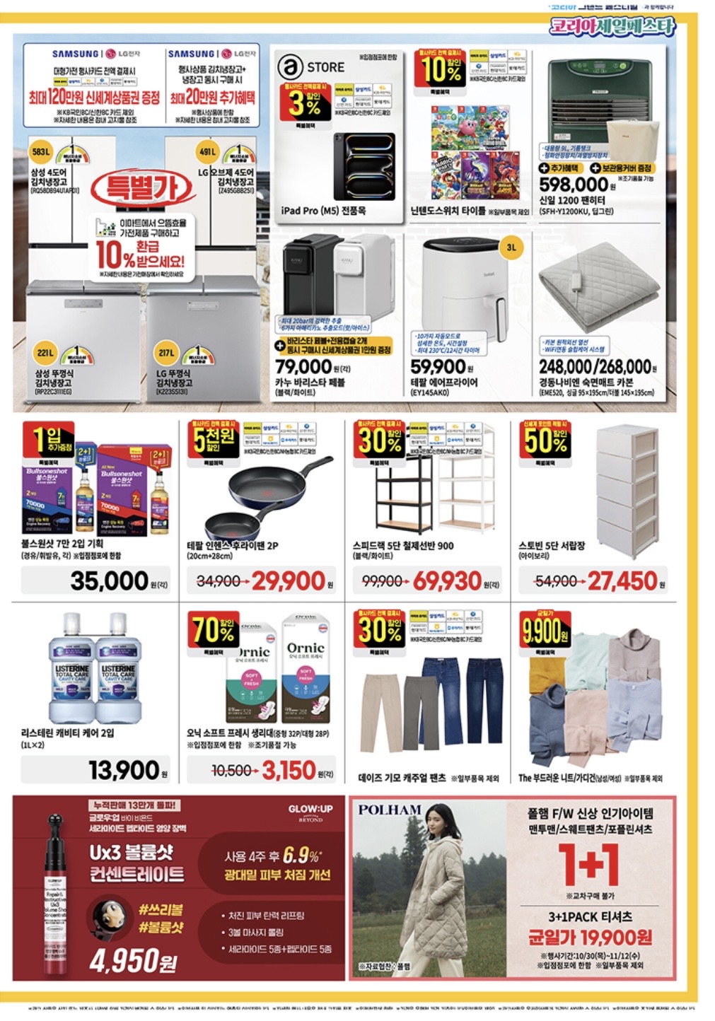 - 생활용품·가전제품: 묶음 특가 및 한정수량 할인