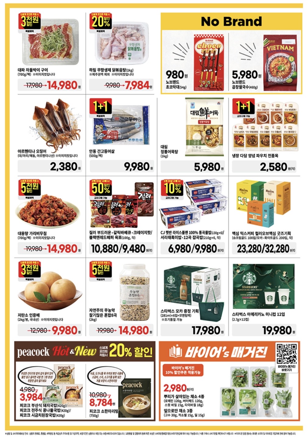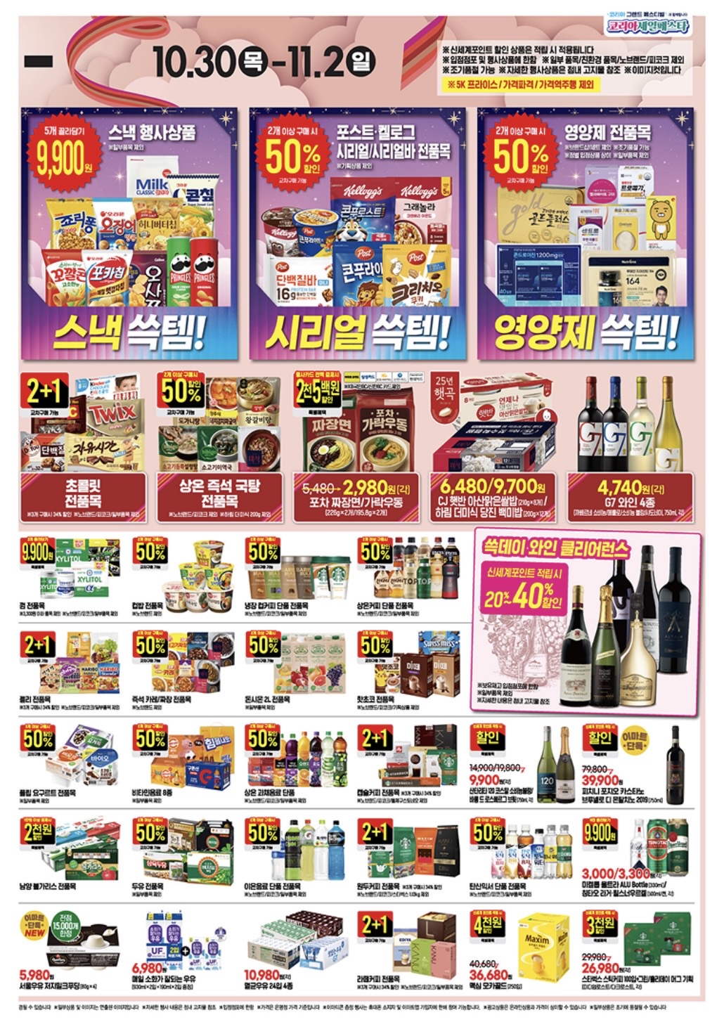 - 냉동식품·만두·햄·장류: 1+1 행사