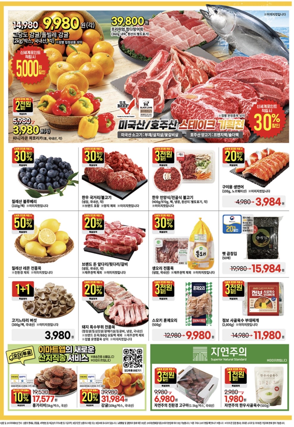 - 스테이크/양고기: 미국산·호주산 → 신세계포인트 적립 시 30% 할인