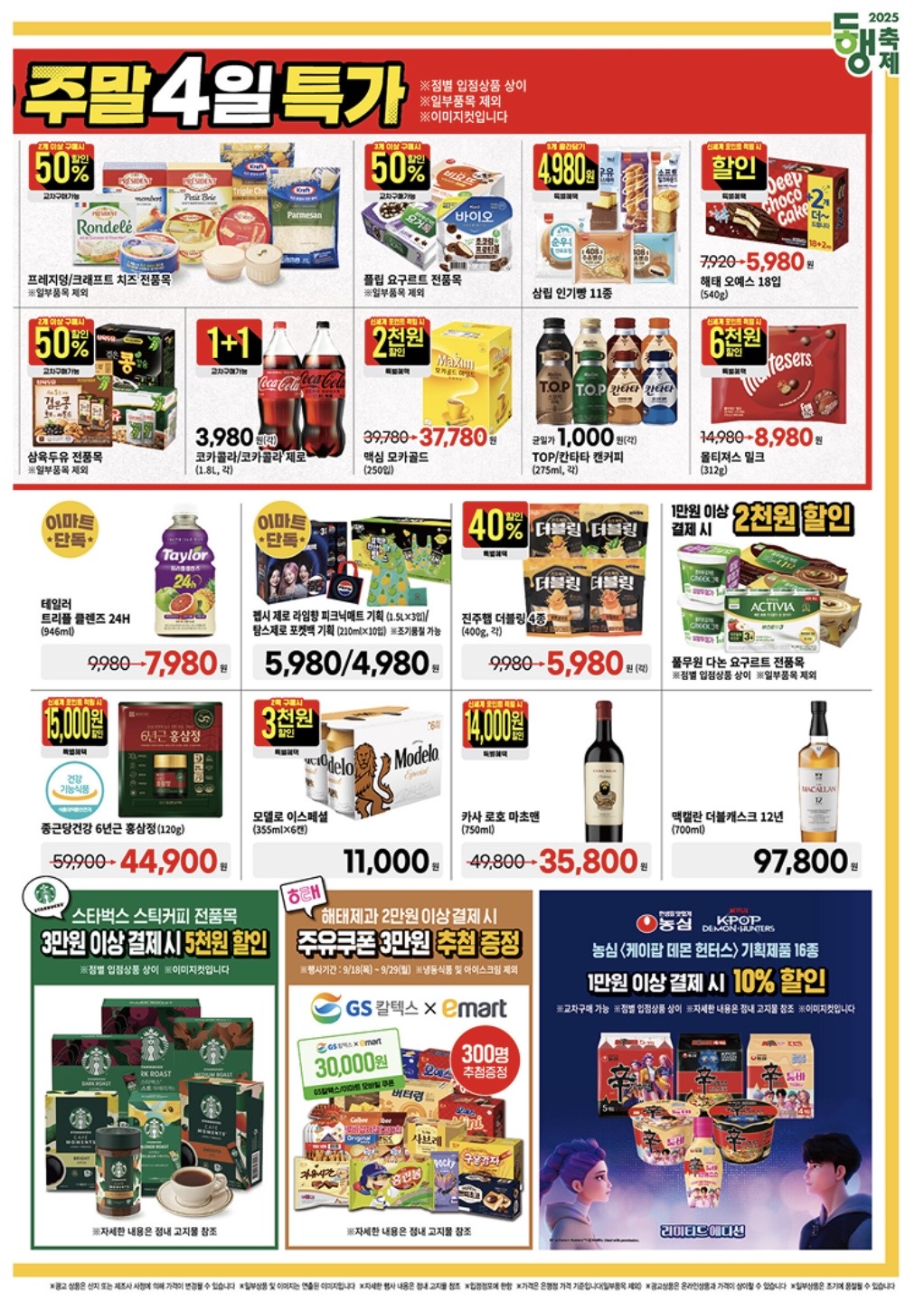 - 김밥키트/치즈류: 2개 이상 구매 시 최대 50% 할인