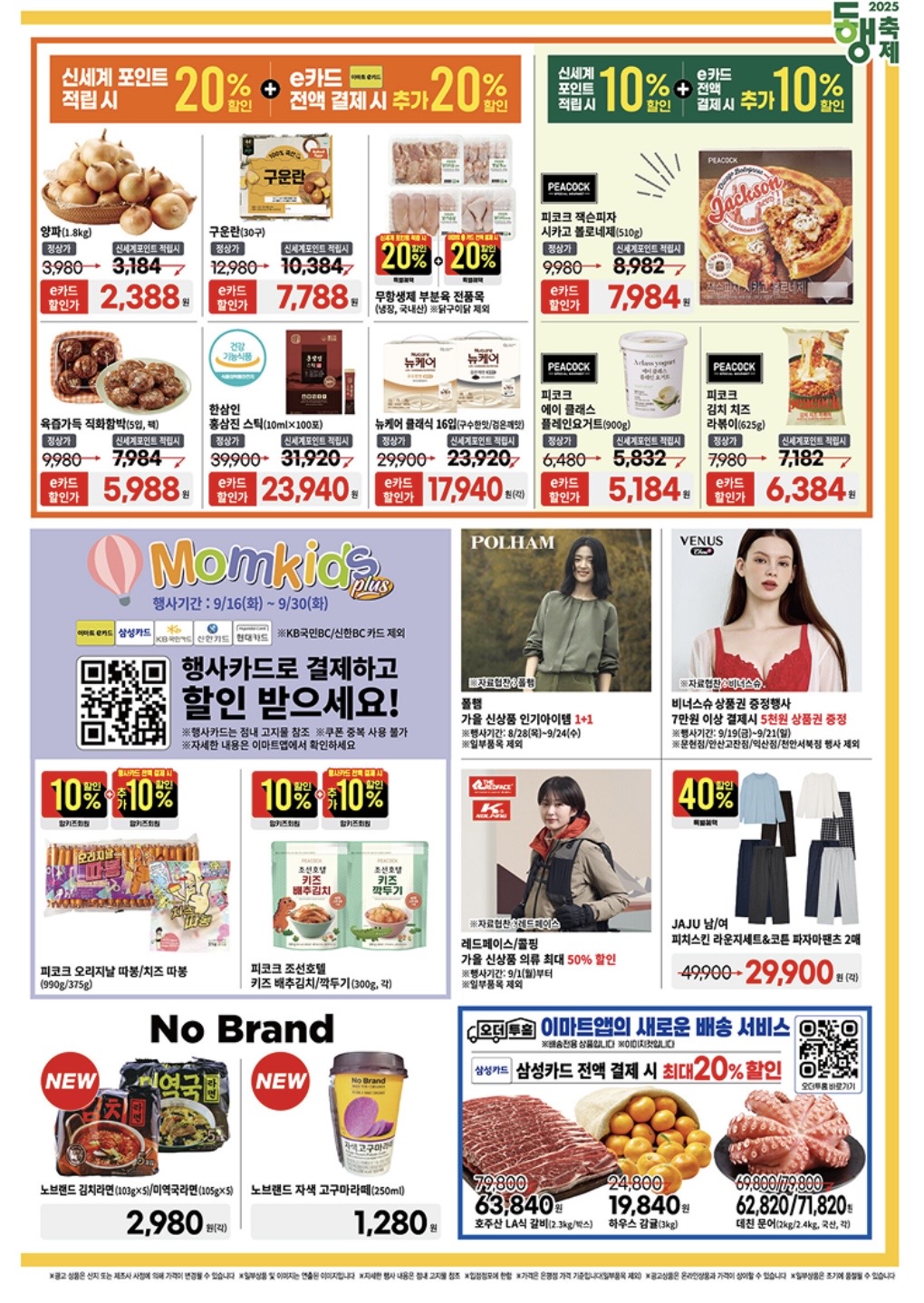 - 피코크 송편/청국장 등: 행사 기간 중 20~30% 할인