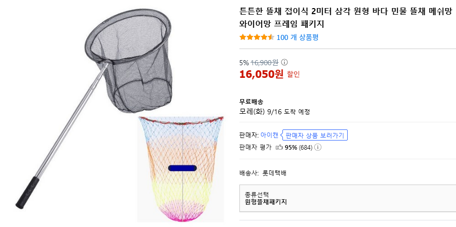 주꾸미를 목표로 왔기 때문에 아래와 같은 뜰채를 들고 바다로 나아갔답니다.