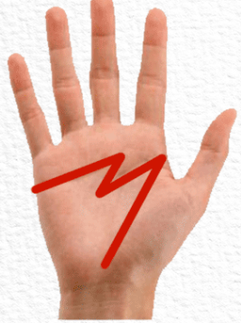 1. 생명선 뿌리에서 중지까지 곡선으로 뻗은 선