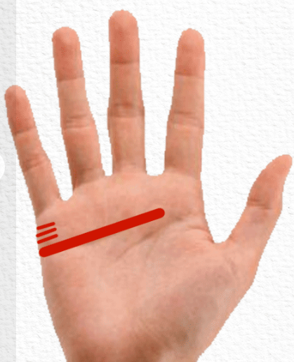 4. 감정선 위에 짧은 선(2~3개면 이성과의 관계 박한 편, 3~4개면 이상적, 5개 이상이면 바람둥이 기질이 있음)