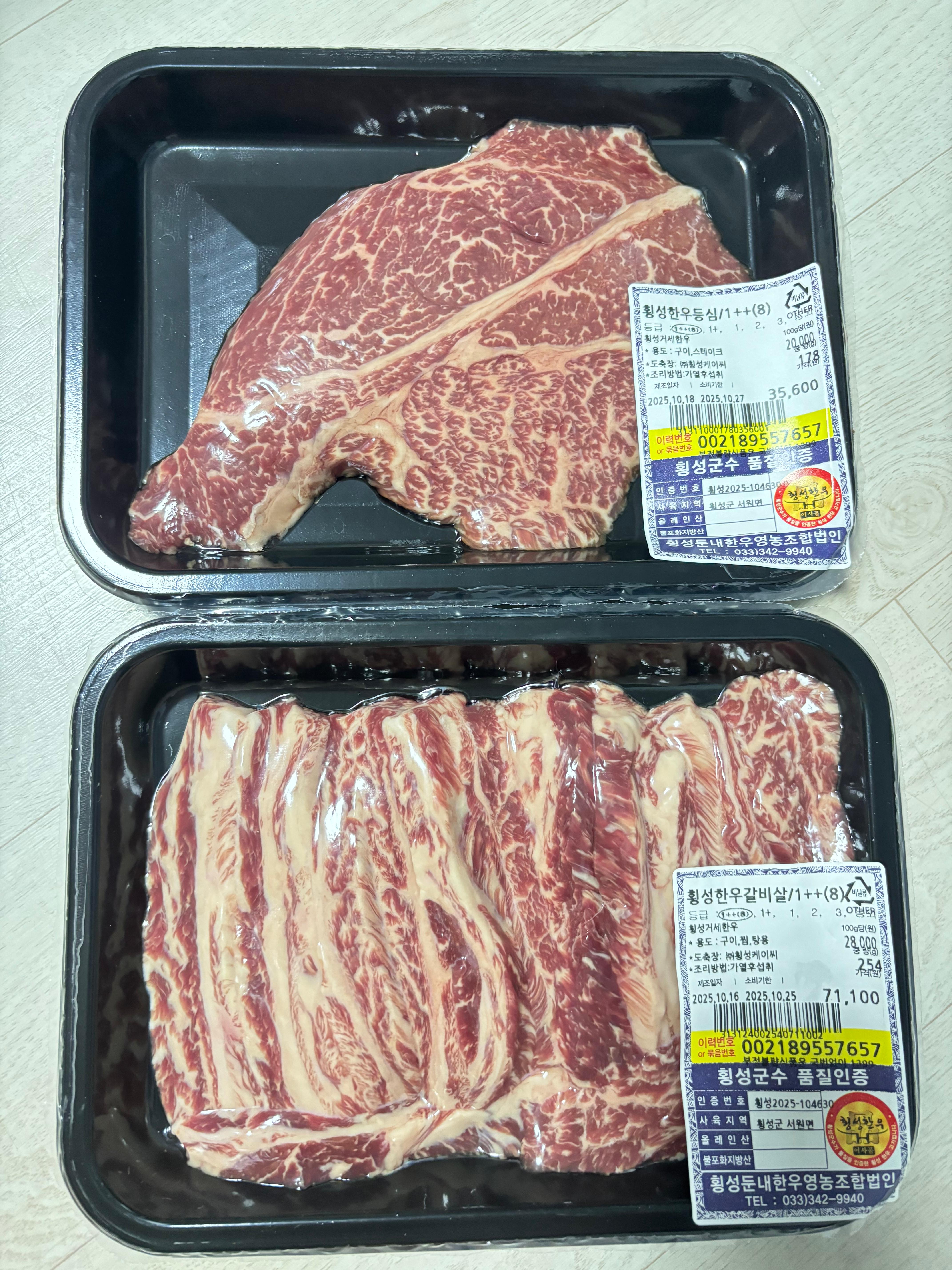 횡성 하면 역시 한우죠? 한우 포장 구매해서 맛나게 구워 먹었답니다.