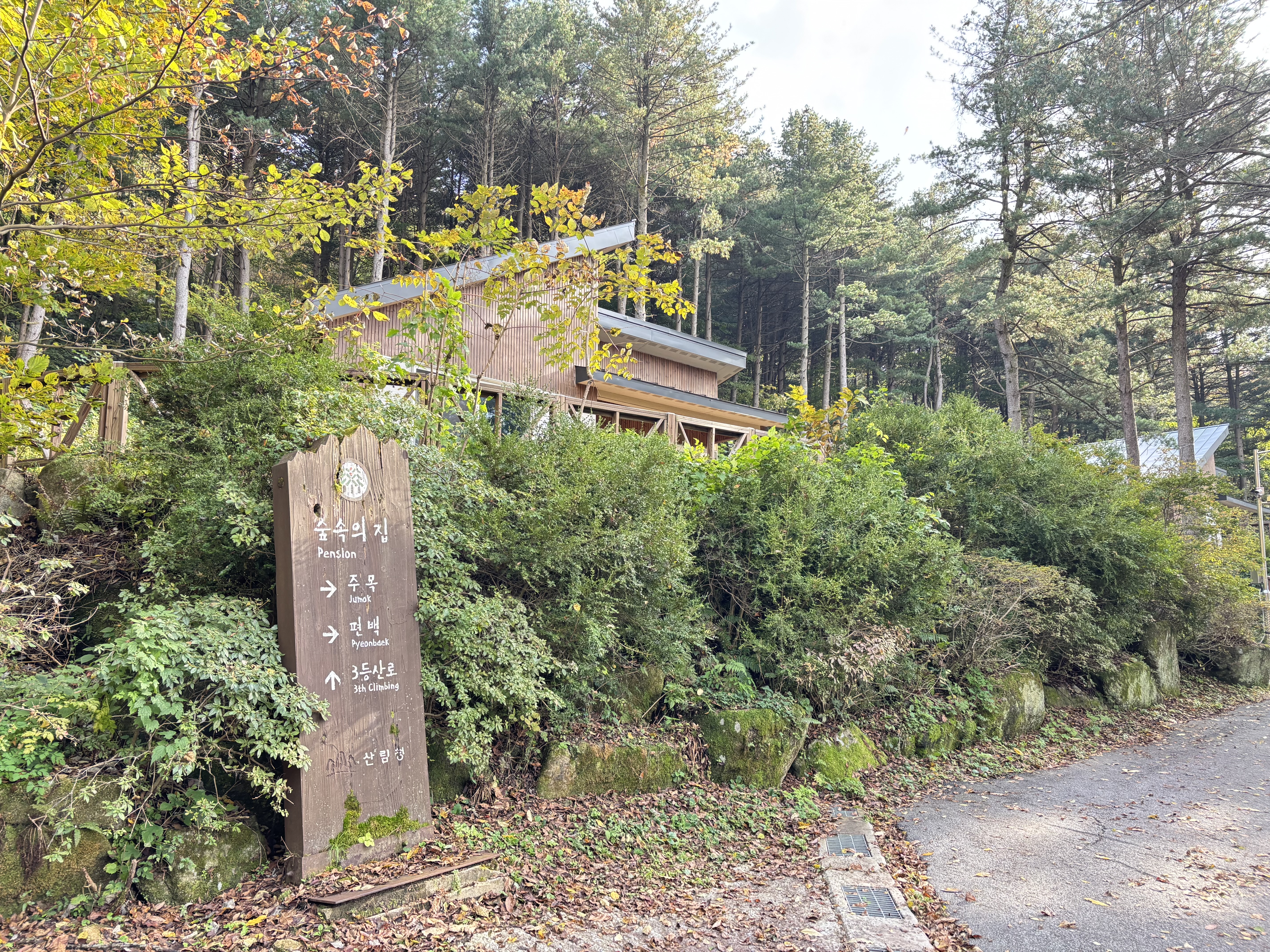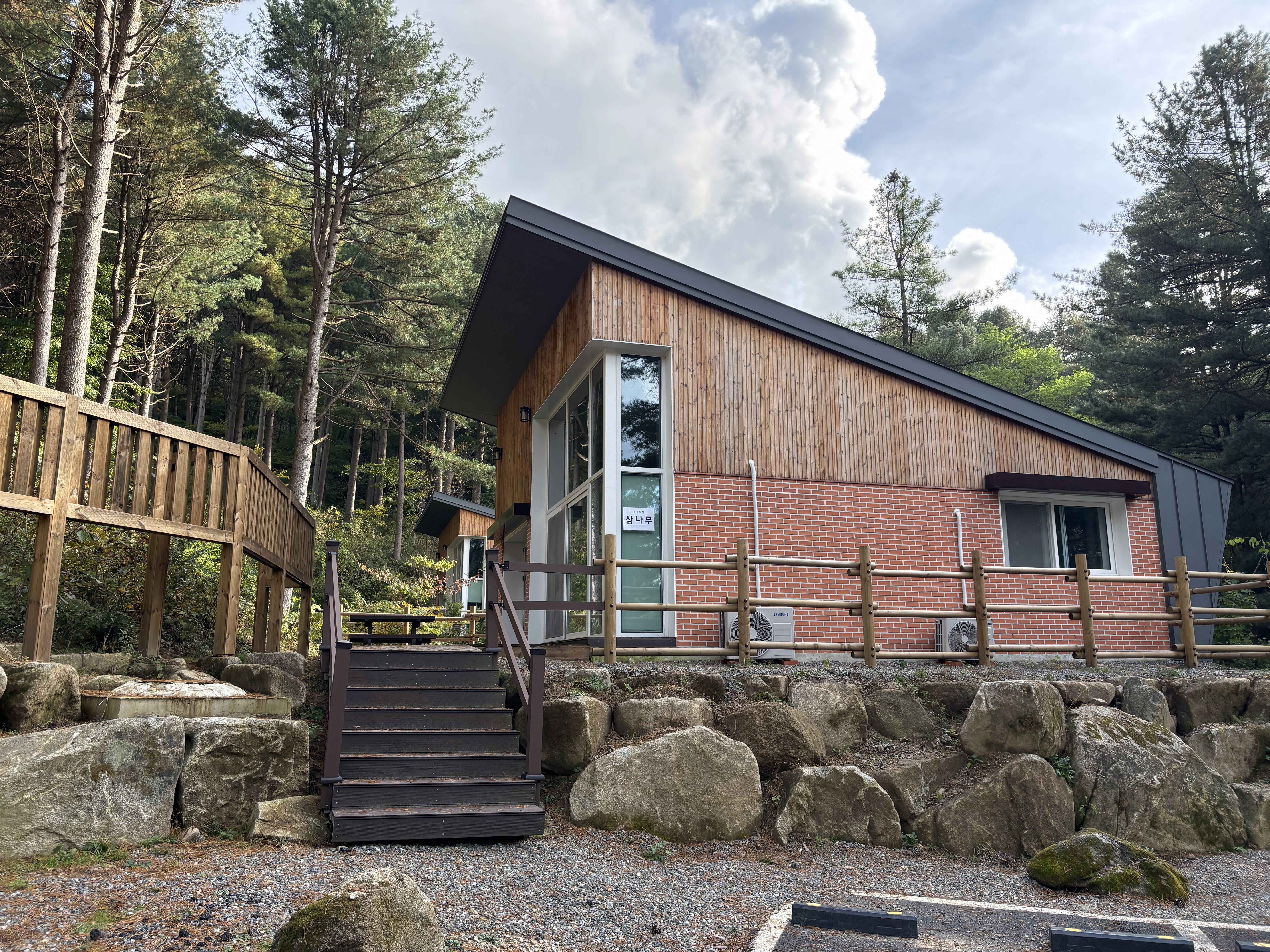 이곳은 숲 속의 집인데 신축 건물에 아주 깔끔하고 멋있어 보였습니다. 다음에는 꼭 숲속의 집을 예약해보고 싶었어요.