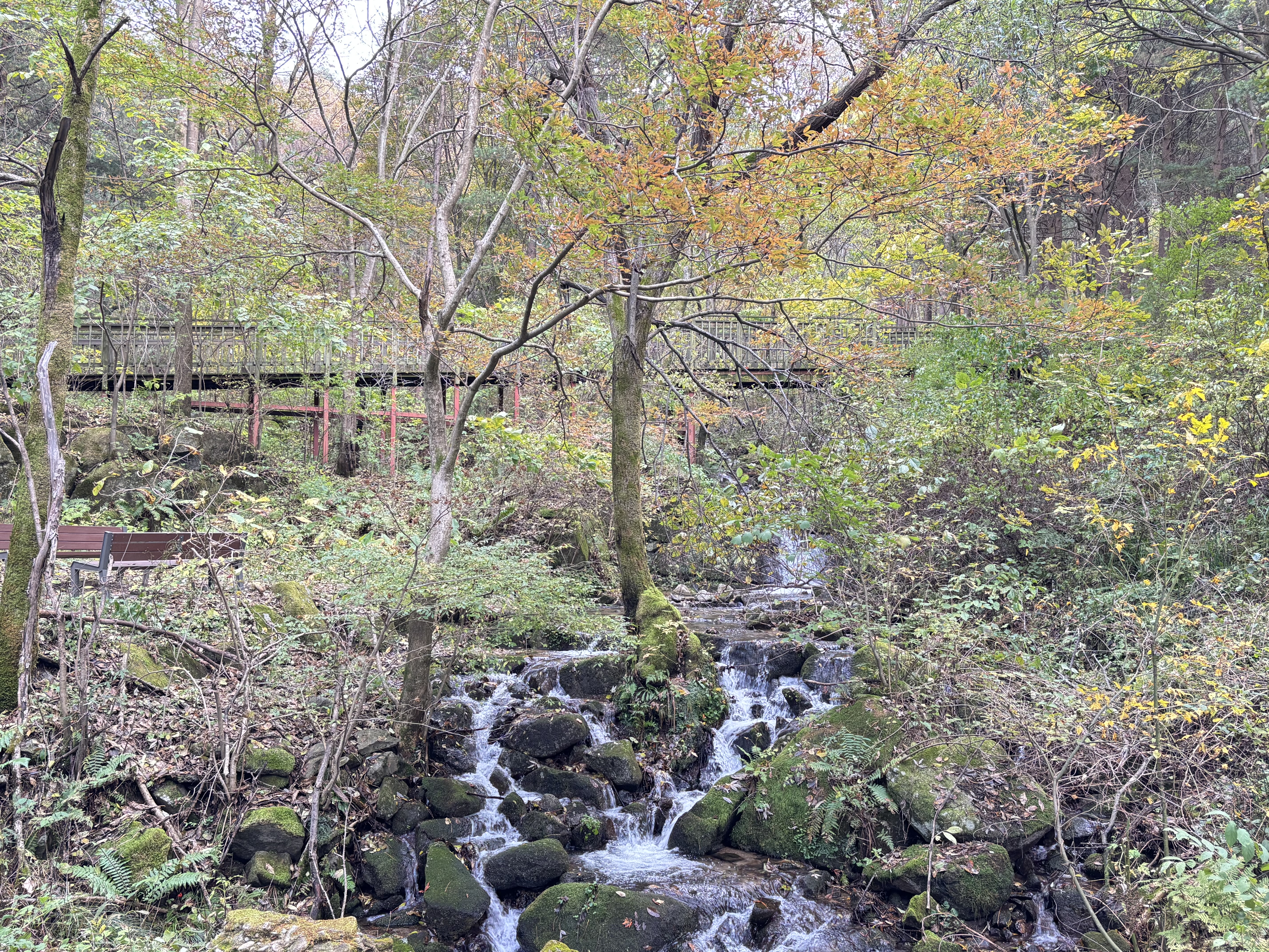 이렇게 이쁜 단풍이 든 나무들도 간간히 보였지만 청태산 자연휴양림은 대부분 잣나무나 소나무인 듯했습니다.
