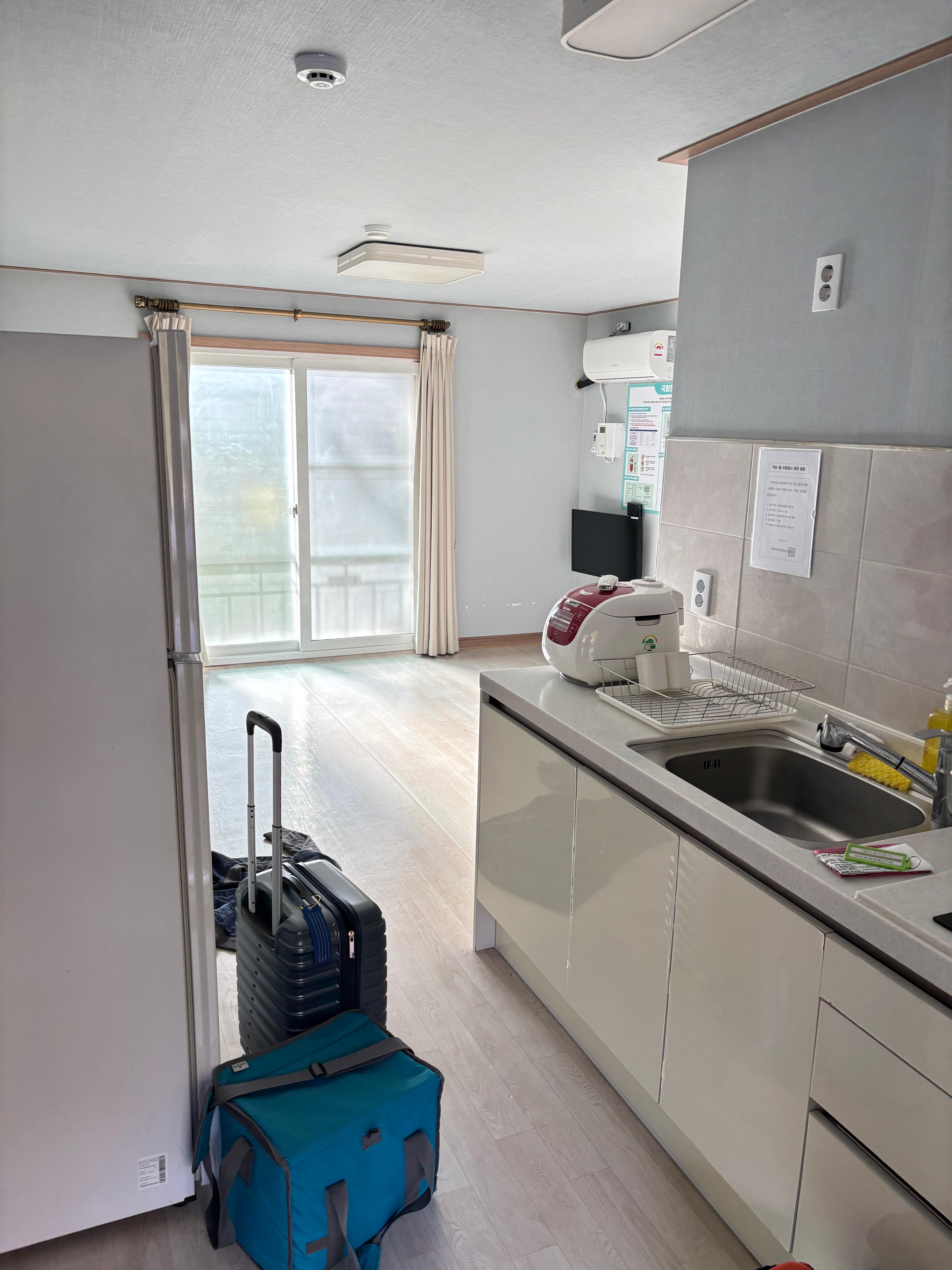 4인 기준 객실이며 TV, 밥솥, 식기도구들, 에어컨 등 필요한 것들은 대부분 있었습니다.
