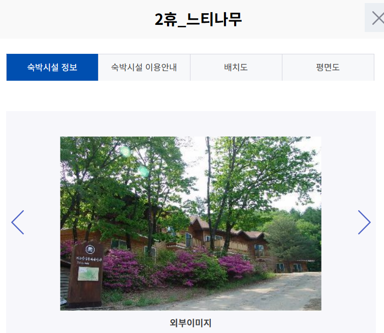 이제 제가 예약하고 다녀온 '제2 휴양관 느티나무' 객실에 대해 알려드릴게요.