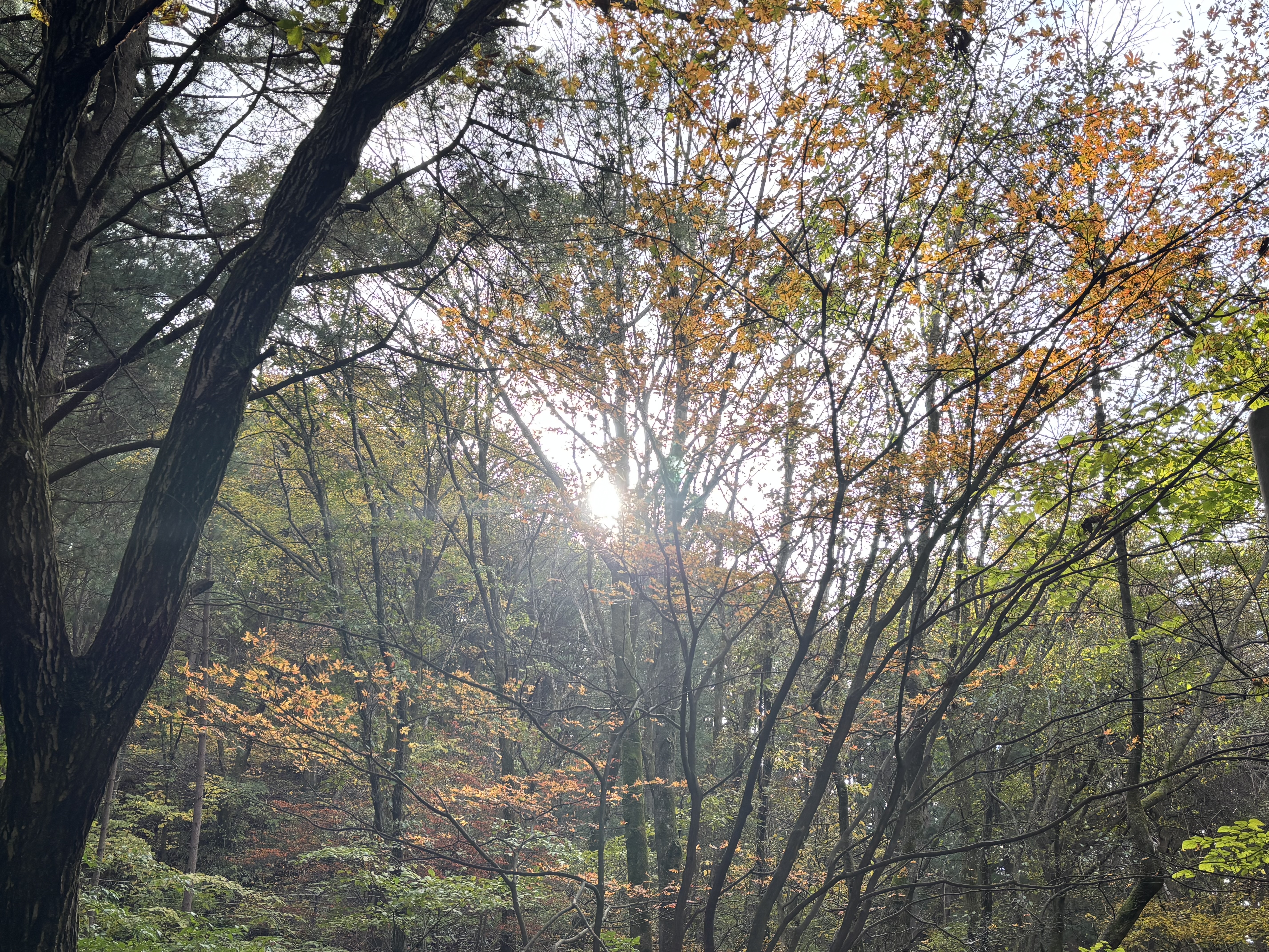 이렇게 이쁜 단풍이 든 나무들도 간간히 보였지만 청태산 자연휴양림은 대부분 잣나무나 소나무인 듯했습니다.
