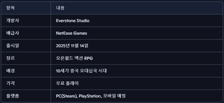 ‘연운(Where Winds Meet)’은 Everstone Studio가 개발하고 NetEase Games가 배급한 오픈월드 무협 액션 RPG로, 2025년 11월 14일 출시된 무료 플레이 게임입니다. PC(Steam)와 PlayStation에서 즐길 수 있으며, 모바일 버전도 출시했답니다.