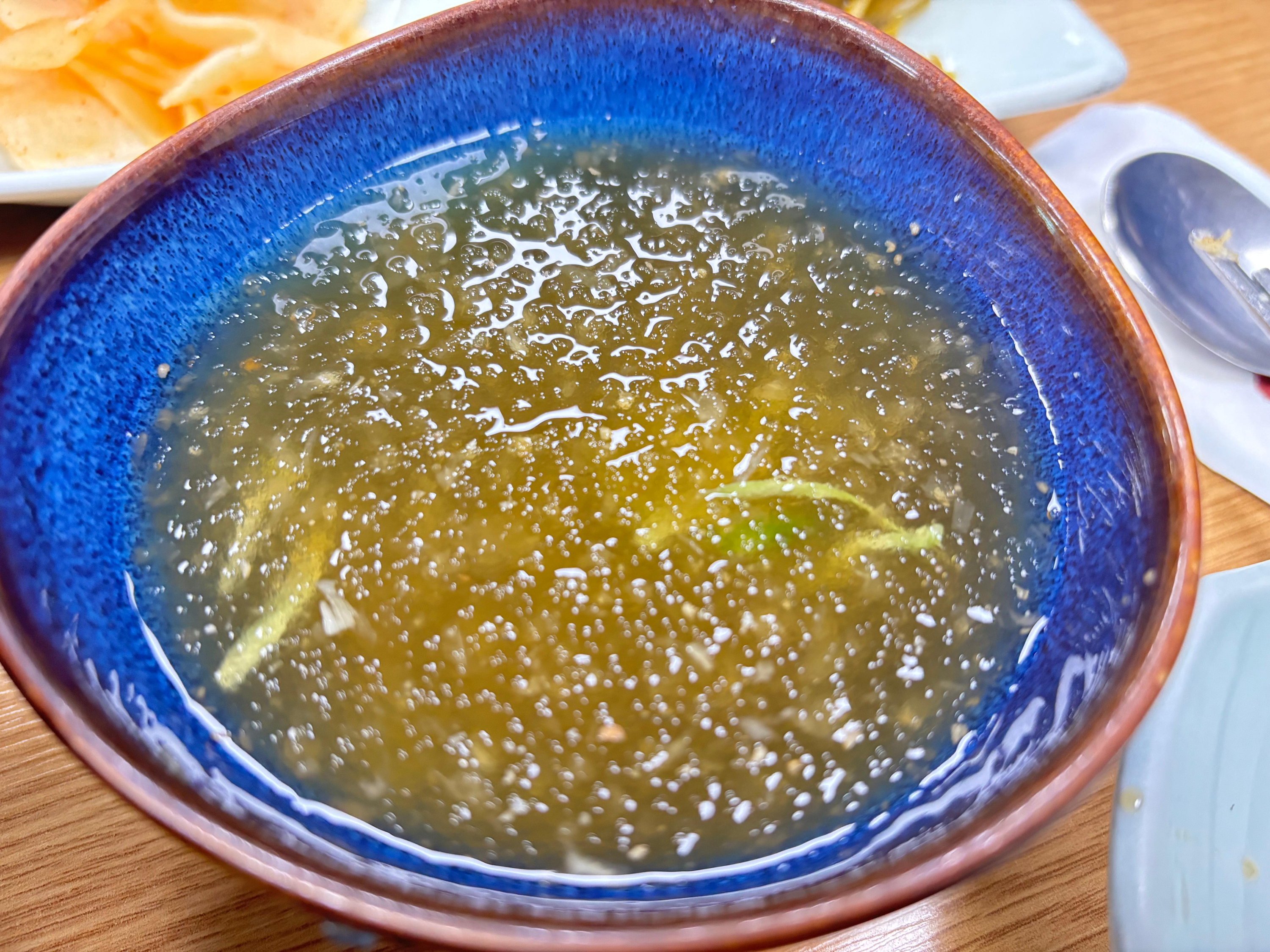 기본 따끈한 면수를 주셨고 테이블마다 다시마초가 구비되어 있었습니다. 메밀국수를 먹으며 기호에 맞게 다시마초를 넣어 먹으면 됩니다.