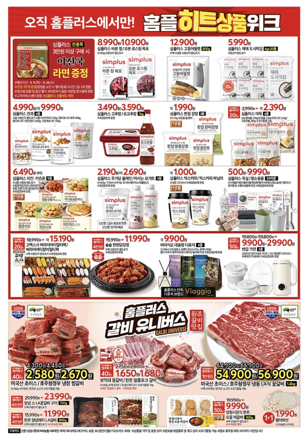 홈플러스의 ‘히트상품 위크’(9월 18일~24일) 전단 행사에서는 신선식품부터 가공식품, 생활용품까지 다양한 인기 상품을 파격적인 가격에 만나볼 수 있어요. 아래에 주요 할인 품목들을 정리해 드릴게요🛒