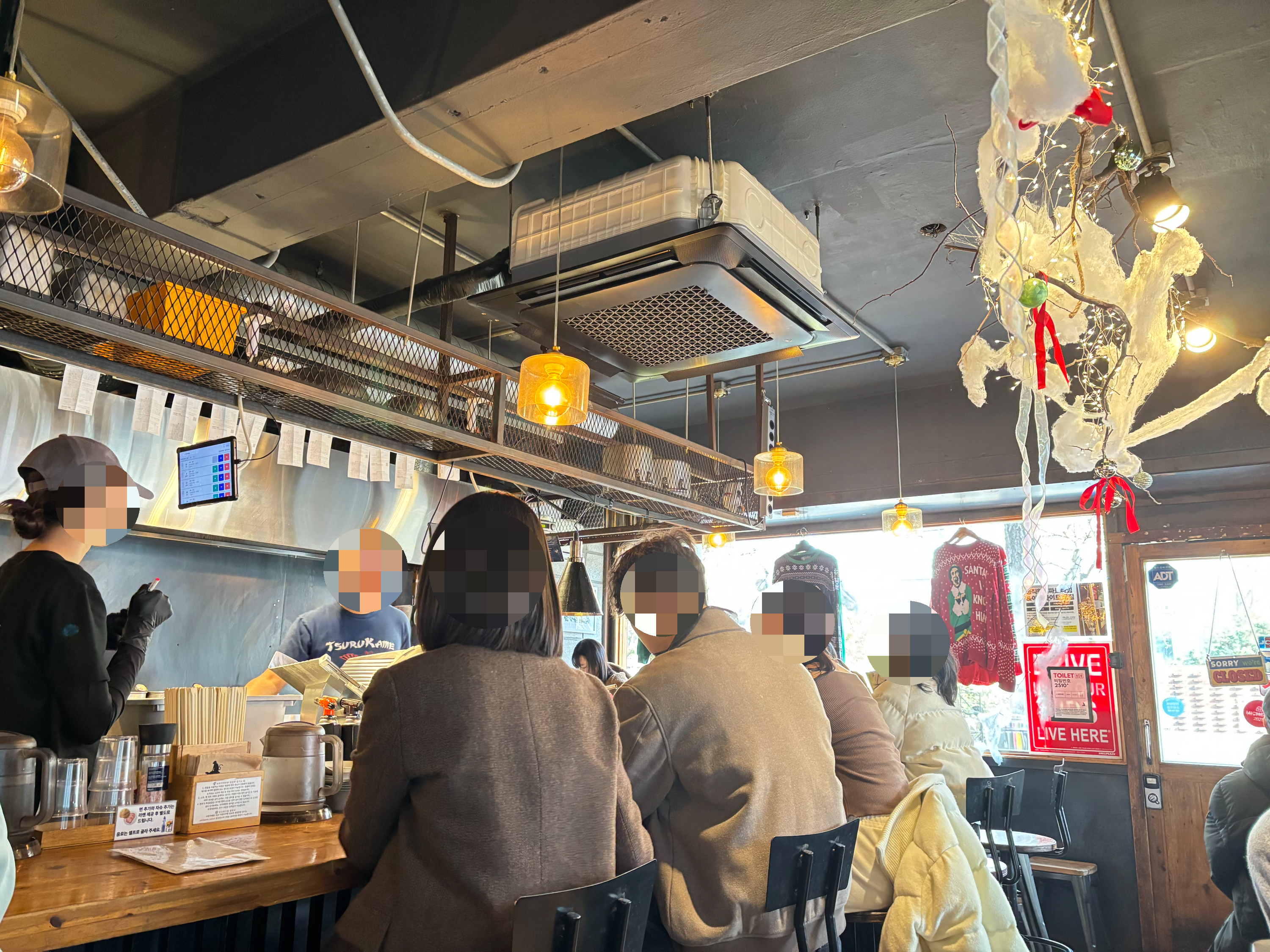 실내는 역시 크리스마스 분위기 나는 소품들로 이쁘게 꾸며져 있었어요. 완전 오픈 주방형태라 일본인 셰프분이 라멘 만드는 과정을 계속 볼 수 있는 게 좋았습니다.
