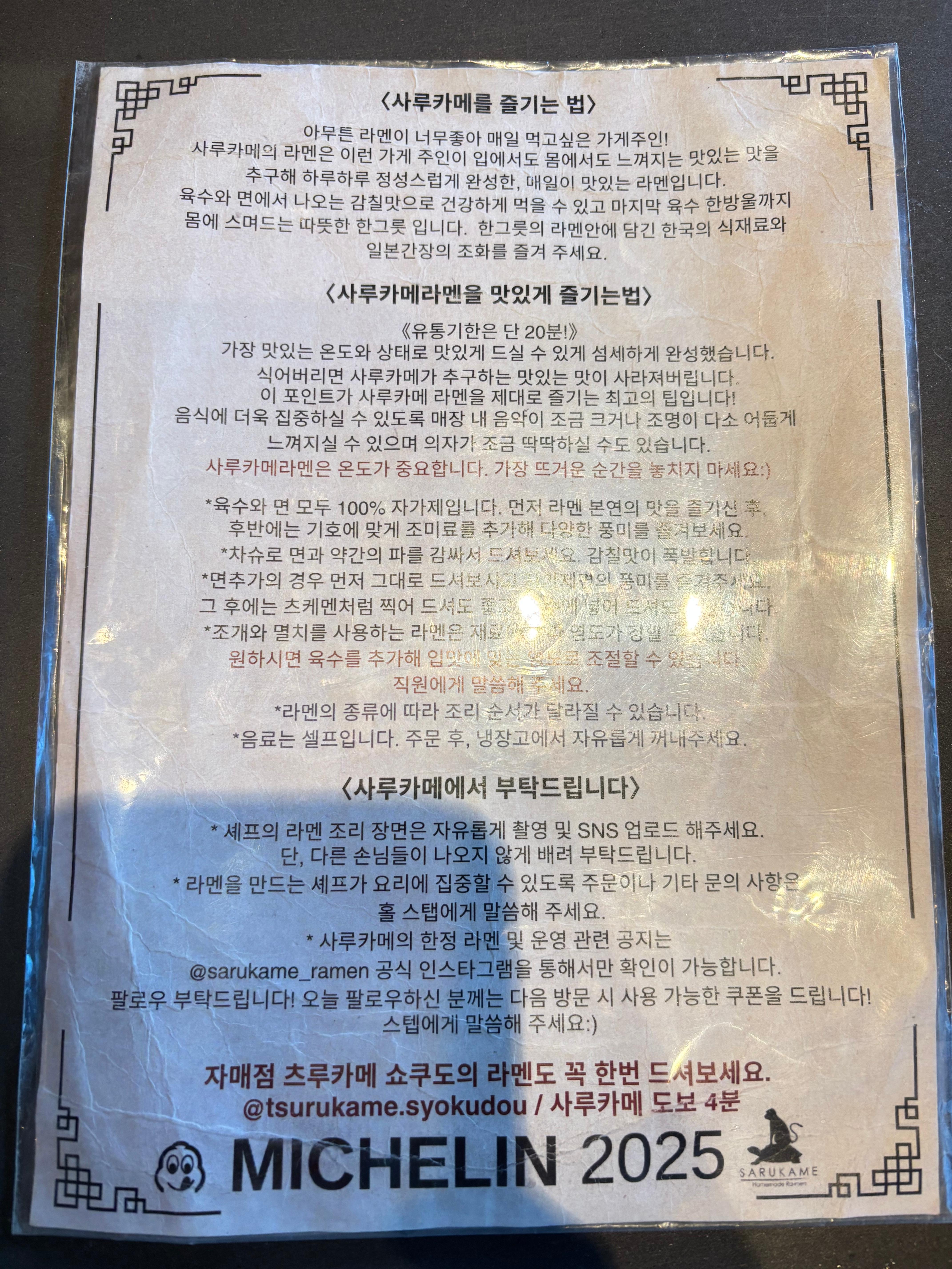 저에게 있어서는 조개육수 특유의 시원하고 깊은 맛을 정말 잘 느낄 수 있는 그런 곳이고 일본인 셰프가 직접 조리하고 있고, 미쉐린 2024, 2025, 블루리본까지 받은 최고의 라멘 맛집 중 하나인 곳입니다.