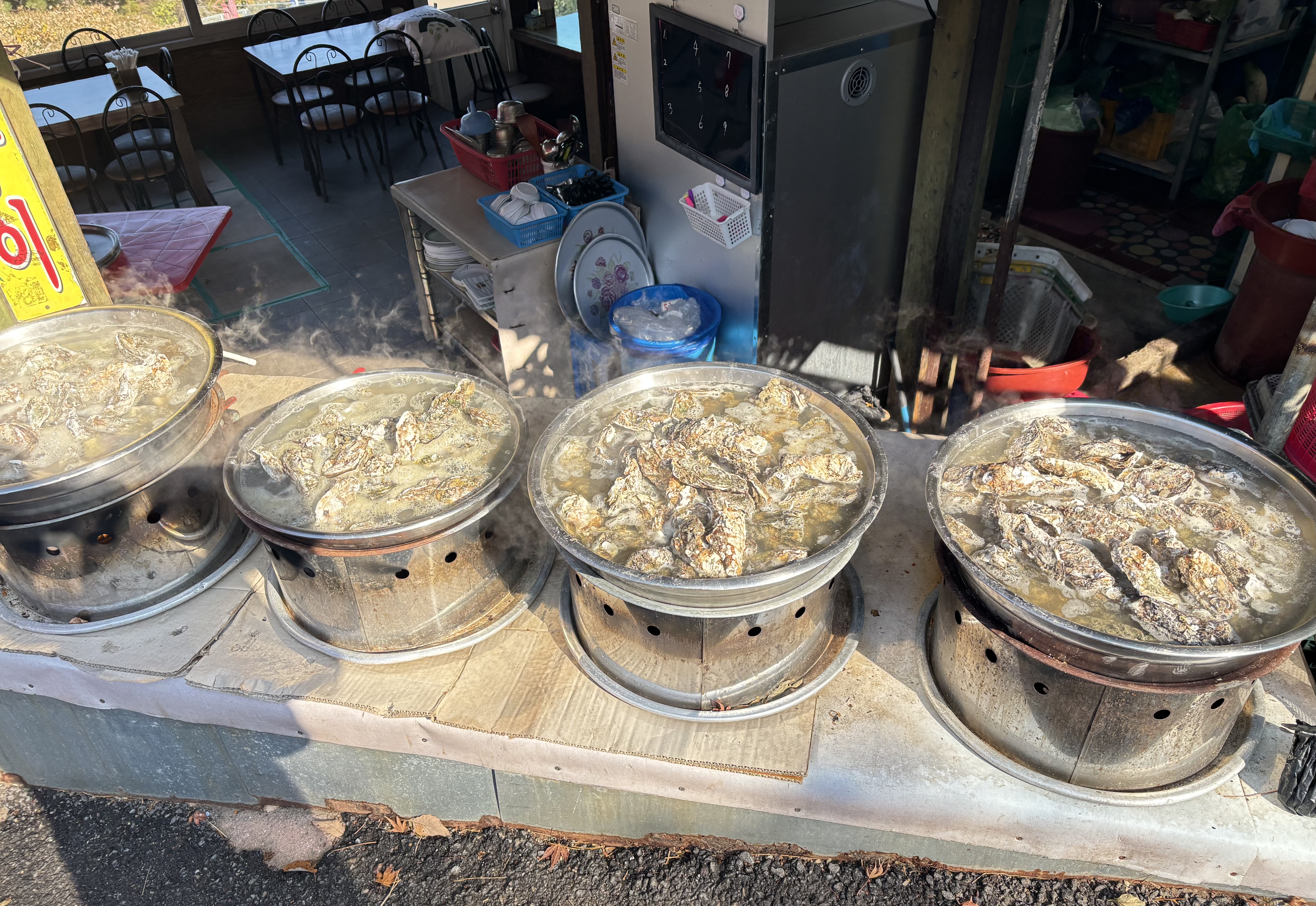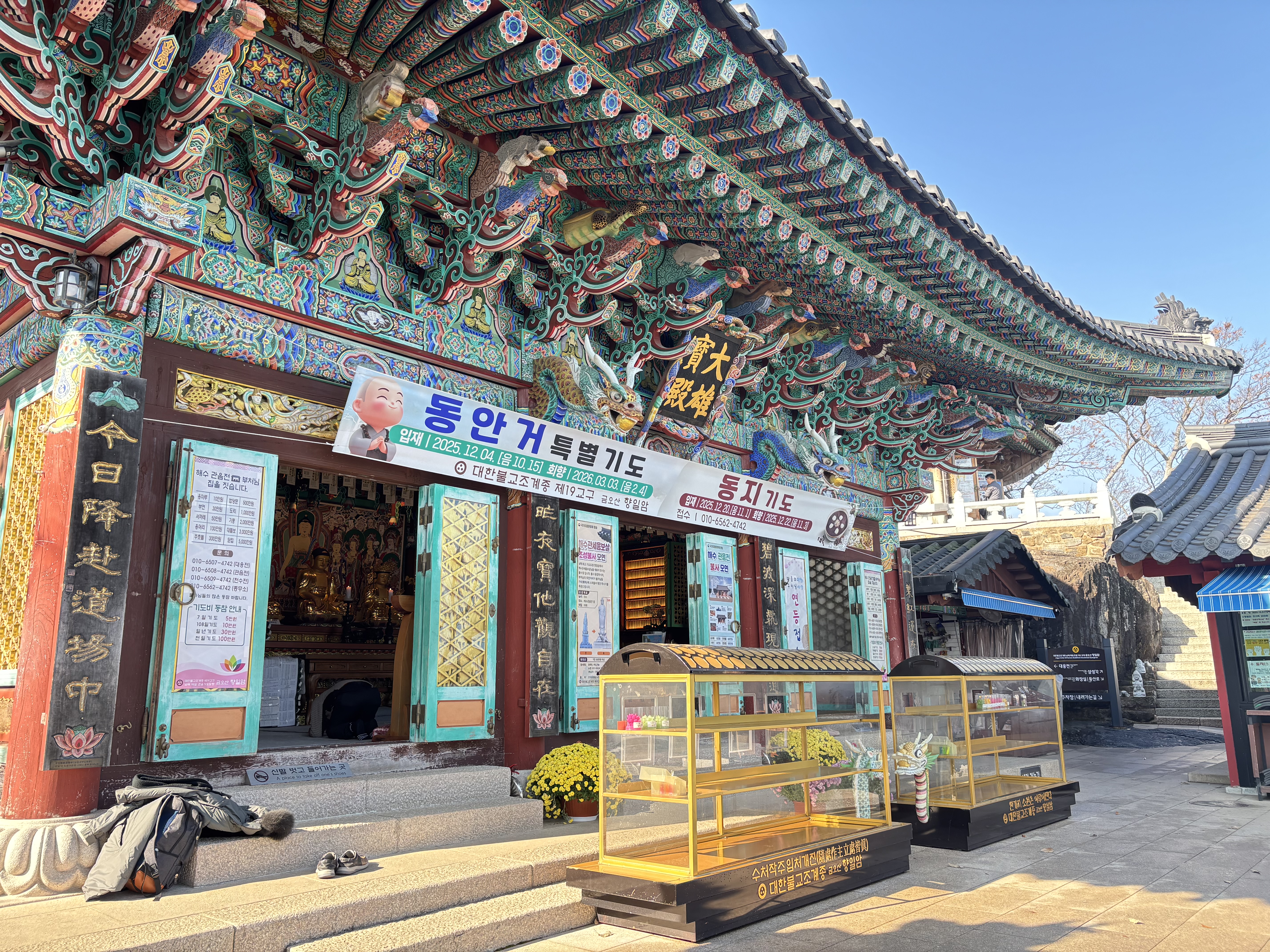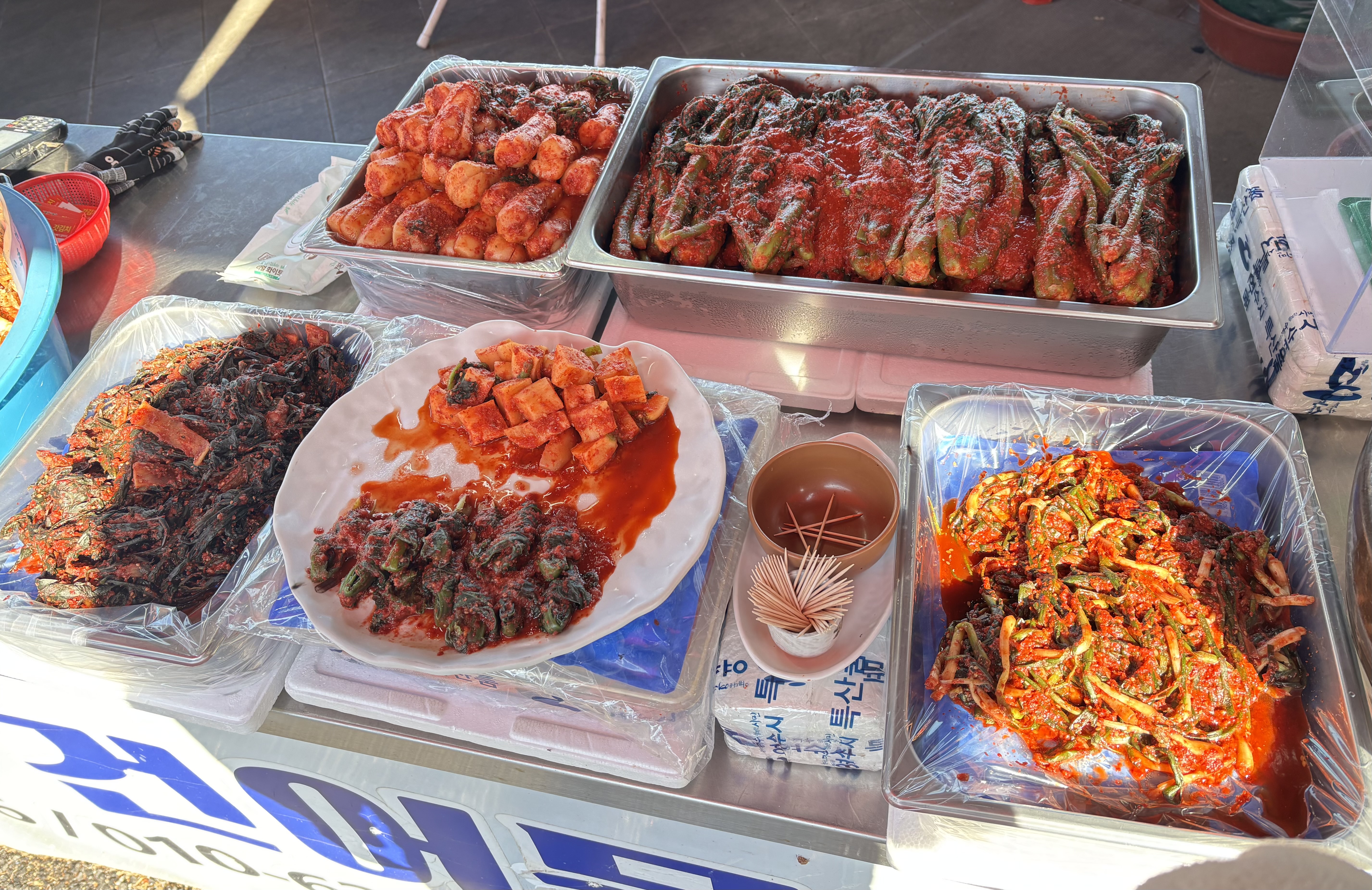 주차장에서 주차 후 향일암으로 가는 길 양 옆으로 이렇게 석화, 돌산갓김치, 말린 홍합 등등 판매하고 있었는데 다들 친절하시고 맛볼 수 있는 그런 점이 너무 좋았습니다.